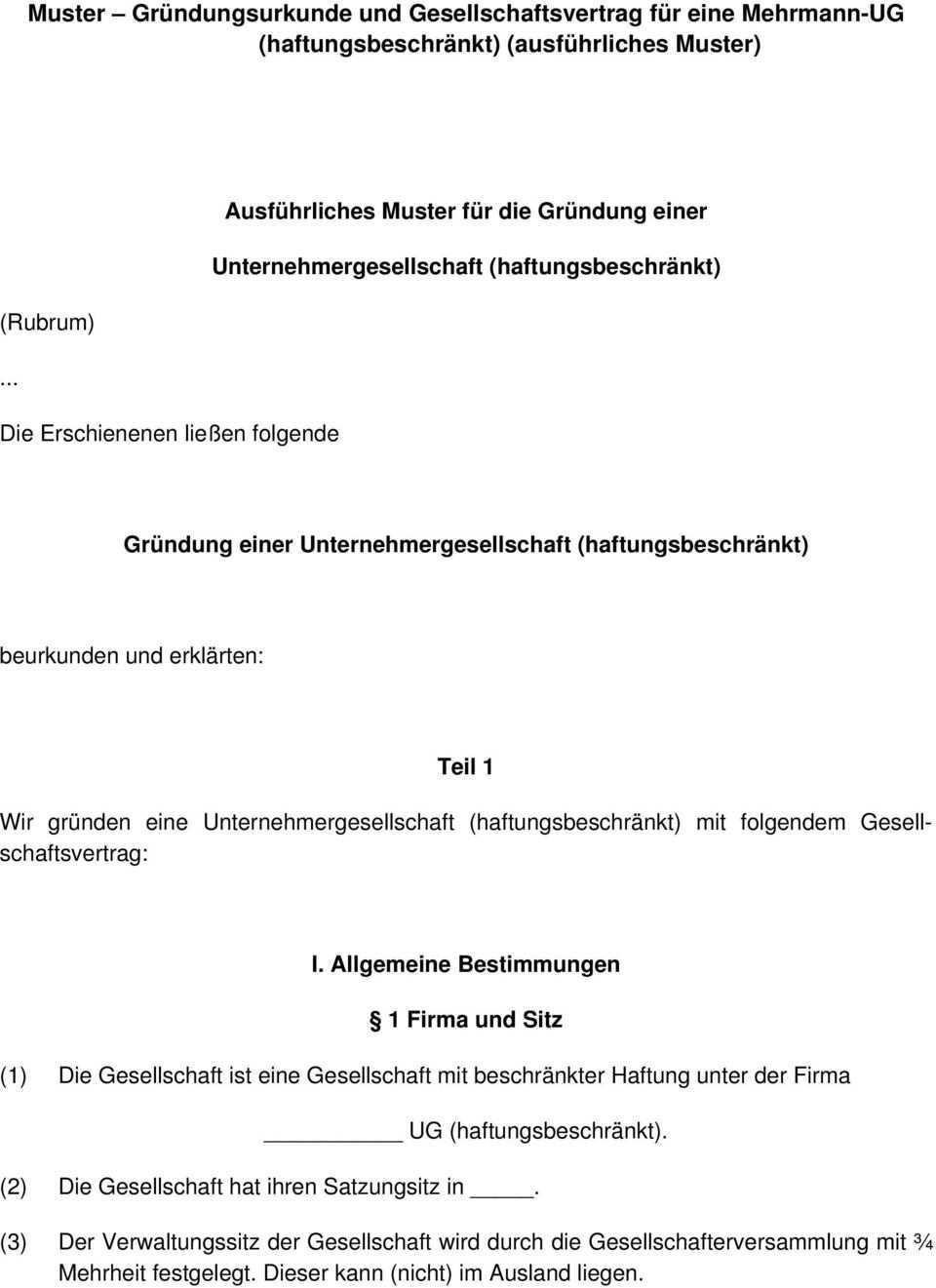 Forderungen und sonstige vermögensgegenstände iii. Herr a anschrift als inhaber eines geschäftsanteils von 12 500 00 euro und 2. Die gesellschafterversammlung ist schon bei anwesenheit des einzigen gesellschafters in jedem fall beschlussfähig. Für eine anfrage z b.