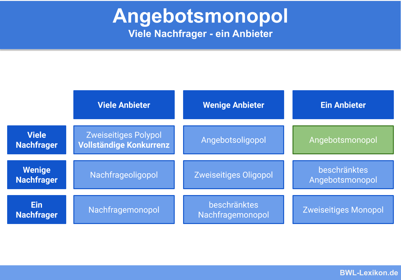Beschraenktes angebotsmonopol beispiel. Die deutsche post herrschte lange zeit vollkommen allein über briefe und pakete bis die monopolstellung irgendwann aufgehoben wurde. Der monopolist der als einziger ein bestimmtes produkt oder eine bestimmte dienstleistung herstellt und anbieten beherrscht den markt. Da sie allerdings nicht mehr der. Die deutsche telekom hat aktuell ein quasi monopol.