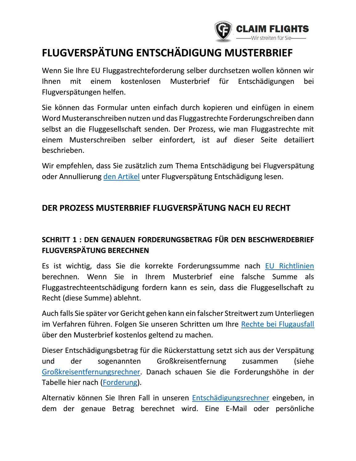 Wenn man bedenkt wie viele millionen lieferungen und dienstleistungen täglich erbracht werden ist es völlig normal dass auch einmal ein auftrag darunter ist der nicht zur zufriedenheit des kunden erfüllt wird. Einfach ihre daten ihre flugdaten und die daten ihrer mitreisenden eingeben und schon erstellt unser system für sie automatisch ein personalisiertes mahnschreiben welches. Die eigenen ansprüche zu kennen ist nutzlos wenn sie auf ihrem wissen sitzen bleiben ohne ihre ansprüche auch richtig einzufordern. Um ihnen die geltendmachung ihrer entschädigung gegen die fluggesellschaften zu erleichtern haben wir ein musterschreiben in deutscher sprache vorbereitet welches sie schnell und komfortabel selbst generieren können.