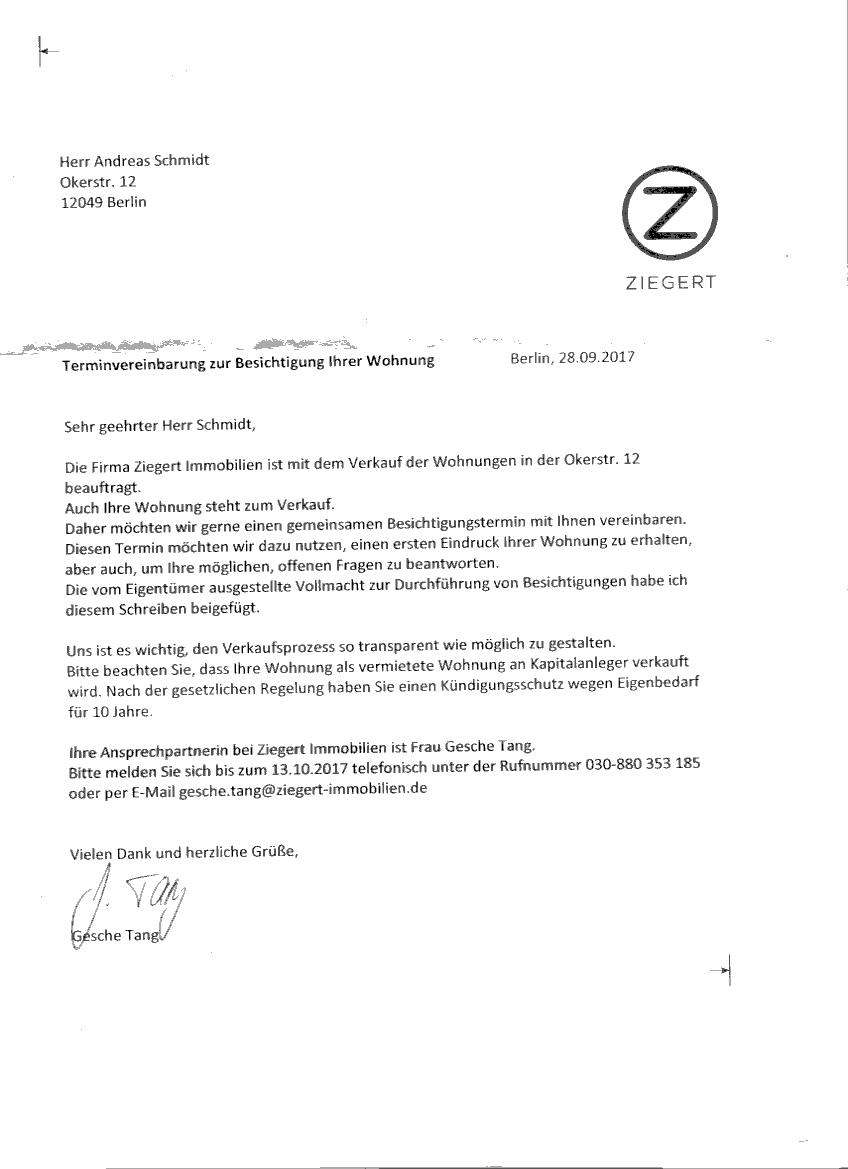Besichtigungstermin vereinbaren muster. Sehr geehrte r herr frau mustermann. März 2019 treffen wir uns wie soeben telefonisch besprochen im hotel schöner blick zum persönlichen kennenlernen. Sehr geehrter mieter ich habe die absicht mein haus in dem sie wohnen zu ver kaufen. Formuliere eine prägnante anfrage und zeige dein direktes interesse mit dem wunsch nach einem besichtigungstermin.