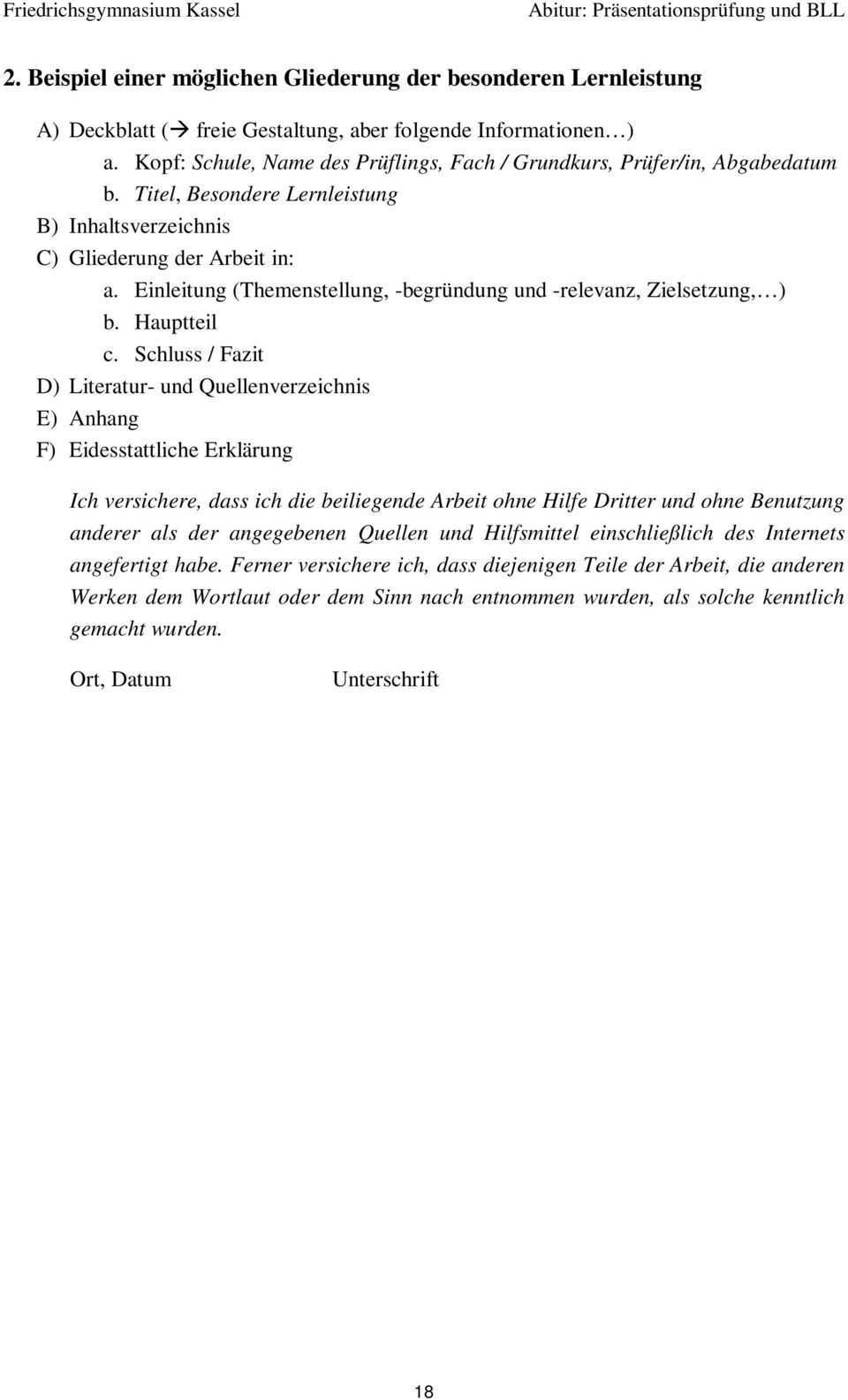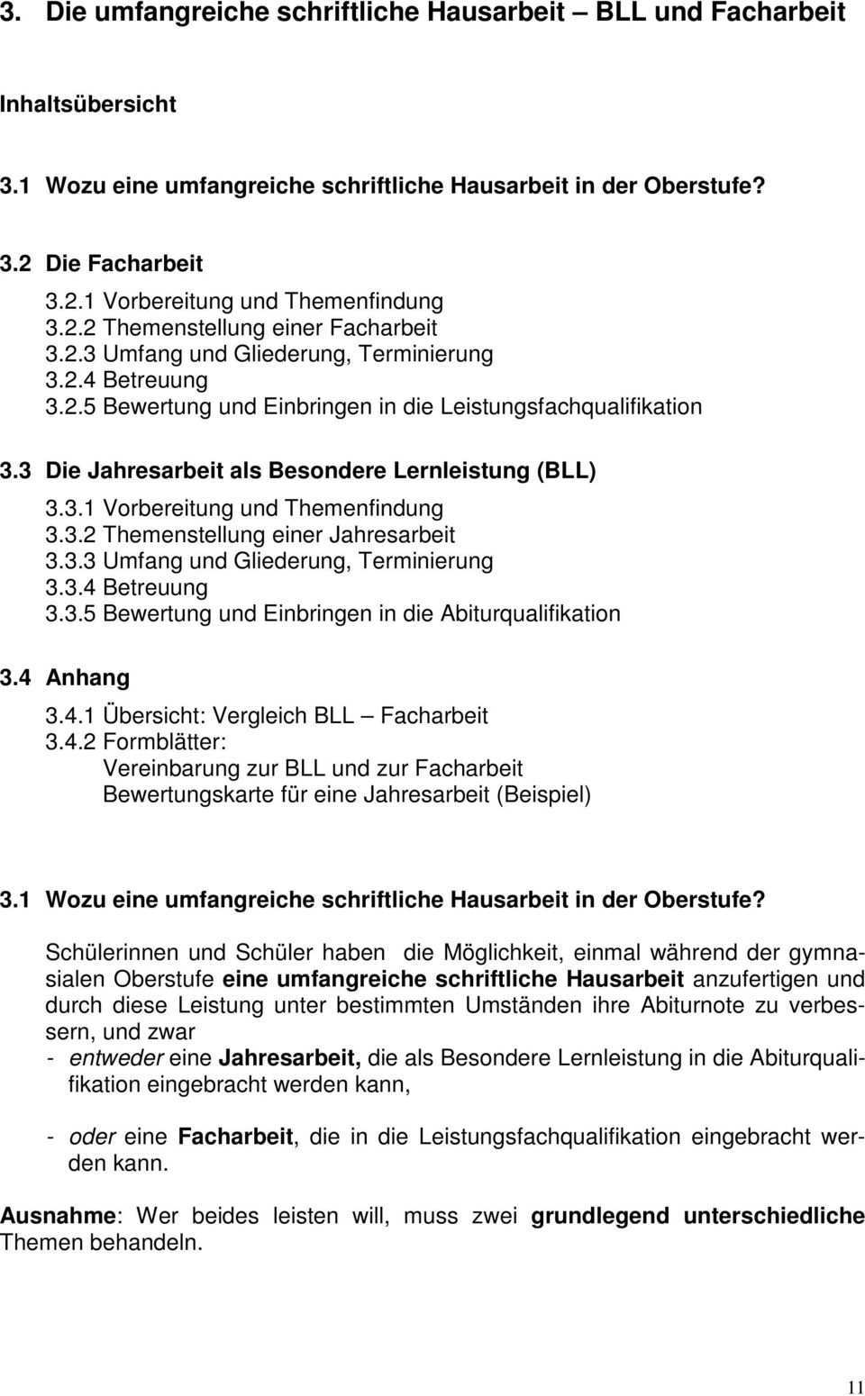 So heißt es im paragraph 15 absatz 1. Besondere lernleistung und facharbeit vor beginn der arbeit muss das thema mit der lehrkraft abgesprochen werden die die anfertigung der arbeit betreut und begleitet. Im rahmen eines stattfindenden seminars einen leistungsnachweis aus einer schriftlichen hausarbeit mit präsentation ersetzen. Oapvo 18 besondere lernleistung 1 eine besondere lernleistung kann 1.