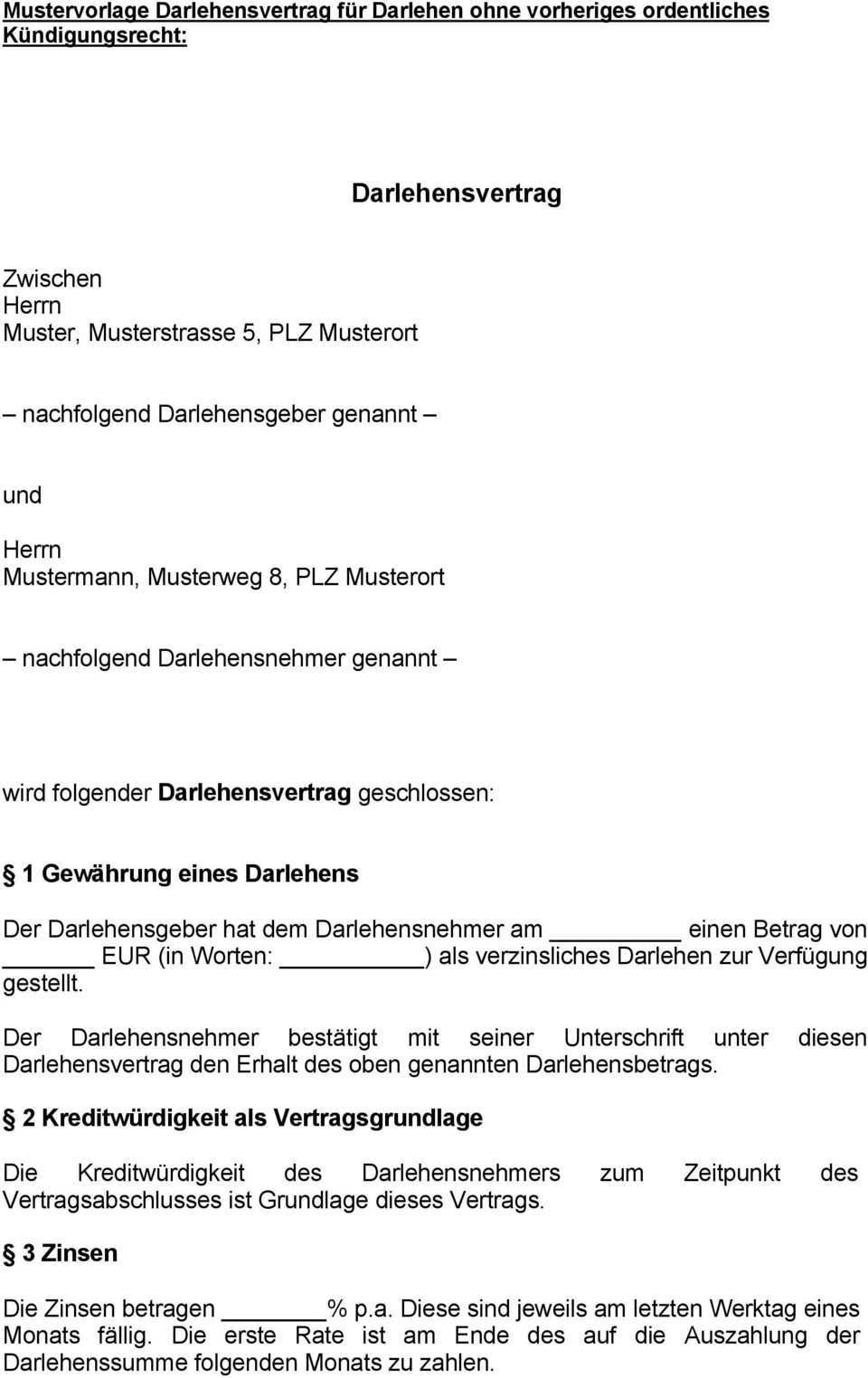 Sehr geehrte r frau herr name ihre zahlung in höhe von euro für die rechnung nr. Bei einem unverzinslichen darlehen kann der darlehensnehmer das darlehen jederzeit zurückzahlen. Kredite unter privatpersonen also der verleih von geld an freunde oder familienangehörige sind weit verbreitet und oftmals eine einfache sowie günstige alternative zu den. Der zweite weg besteht darin die aufgelaufenen zinsen als n 1 tranche zu nehmen n bezieht sich auf die.