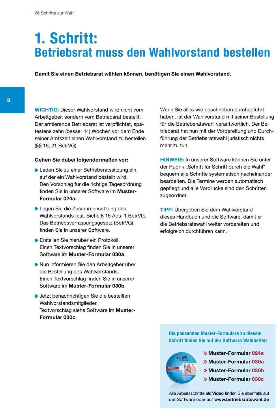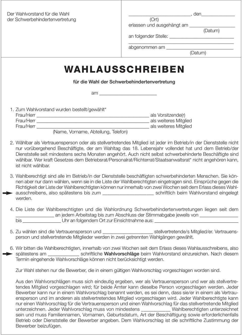 Im förmlichen wahlverfahren benötigen sie einen wahlvorstand wer diesen bestellen kann hängt jedoch davon ab ob es noch eine amtierende schwerbehindertenvertretung gibt oder ob erstmalig gewählt wird. Zur bestellung maßgebend 3 einer frühzeitigeren bestellung des wahlvorstands steht nichts entgegen. Gerichtliche bestellung eines wahlvorstands im hauptsacheverfahren. Muster für einen beschluss mit dem der betriebsrat gemäß 16 betrvg einen wahlvorstand bestellt der die nächste betriebsratswahl vorbereiten und durchführen soll.