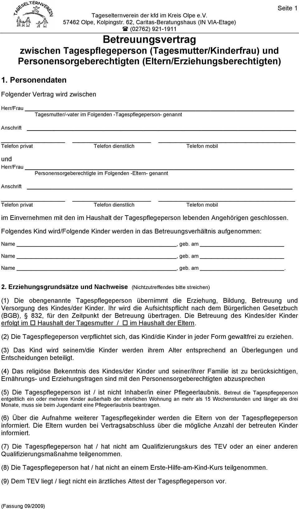 Die tagesmutter der tagesvater und die sorgeberechtigten gestalten das betreuungsverhältnis part nerschaftlich und stimmen sich in grundlegenden die betreuung betreffenden fragen ab. Der mustervertrag ist vor allem als checkliste mit formulierungshilfen zu verstehen und soll eine anregung bieten. Zusammenarbeit zwischen eltern und tagesmutter 6. Mai 2019 seite 2 von 22 liebe tagesmütter liebe tagesväter liebe eltern wir empfehlen ihnen vor beginn eines betreuungsverhältnisses ihre jeweiligen rechte und pflich ten im zusammenhang mit der betreuung eines tagespflegekindes in einem betreuungsvertrag festzuhalten.