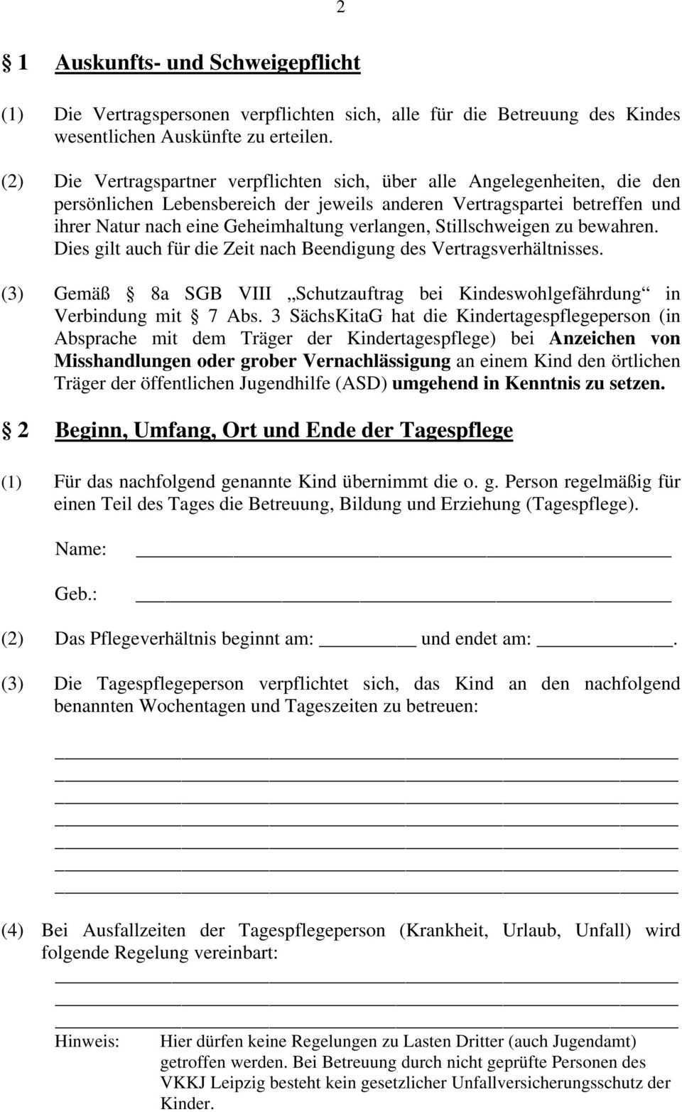 Muster für einen privatrechtlichen betreuungsvertrag der kindertagespflegeperson.