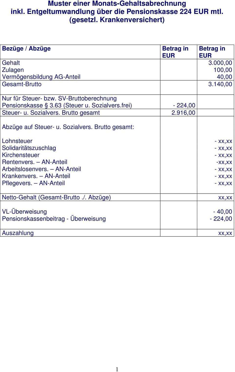 Beispiel ansparphase externer durchführungsweg gehalt 4 000 euro gehaltsverzicht pensionskasse 200 euro nach 3 nr. Auszahlungsbetrag sich aufgrund der gehaltsumwandlung ergibt. Trotz muster lohnabrechnung gilt für kleinunternehmer. Klassischer gehaltsverzicht mit pensionskasse nach 3 nr.