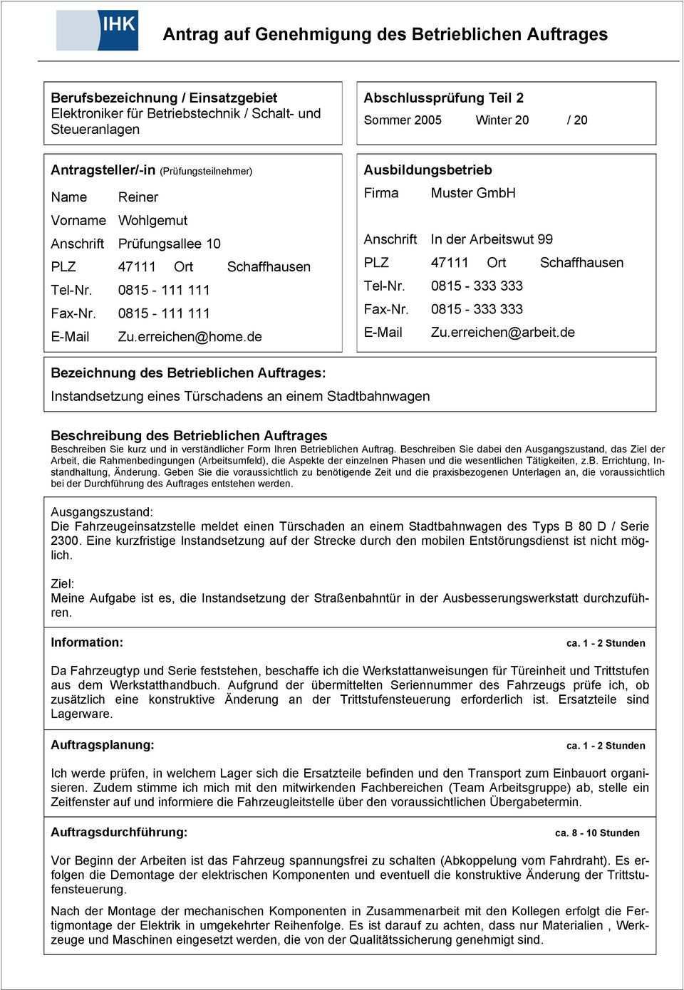 Diese auftragsphasen müssen in der dokumentation dargestellt werden. Der dihk stellt insgesamt vier musteraufträge im ihk wissensmanagement zur verfügung. Beschreiben sie kurz und in verständlicher form ihren betrieblichen auftrag. Die praxisbezogenen unterlagen zum betrieblichen auftrag im anhang c befinden sich ein betrieblicher musterauftrag der das niveau des betrieblichen auftrages.