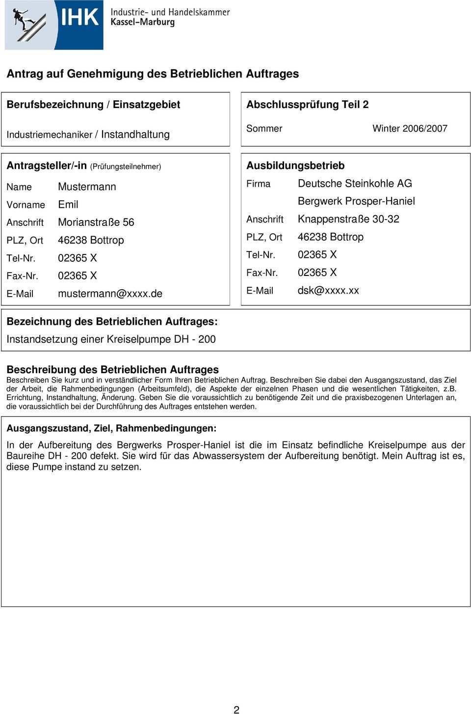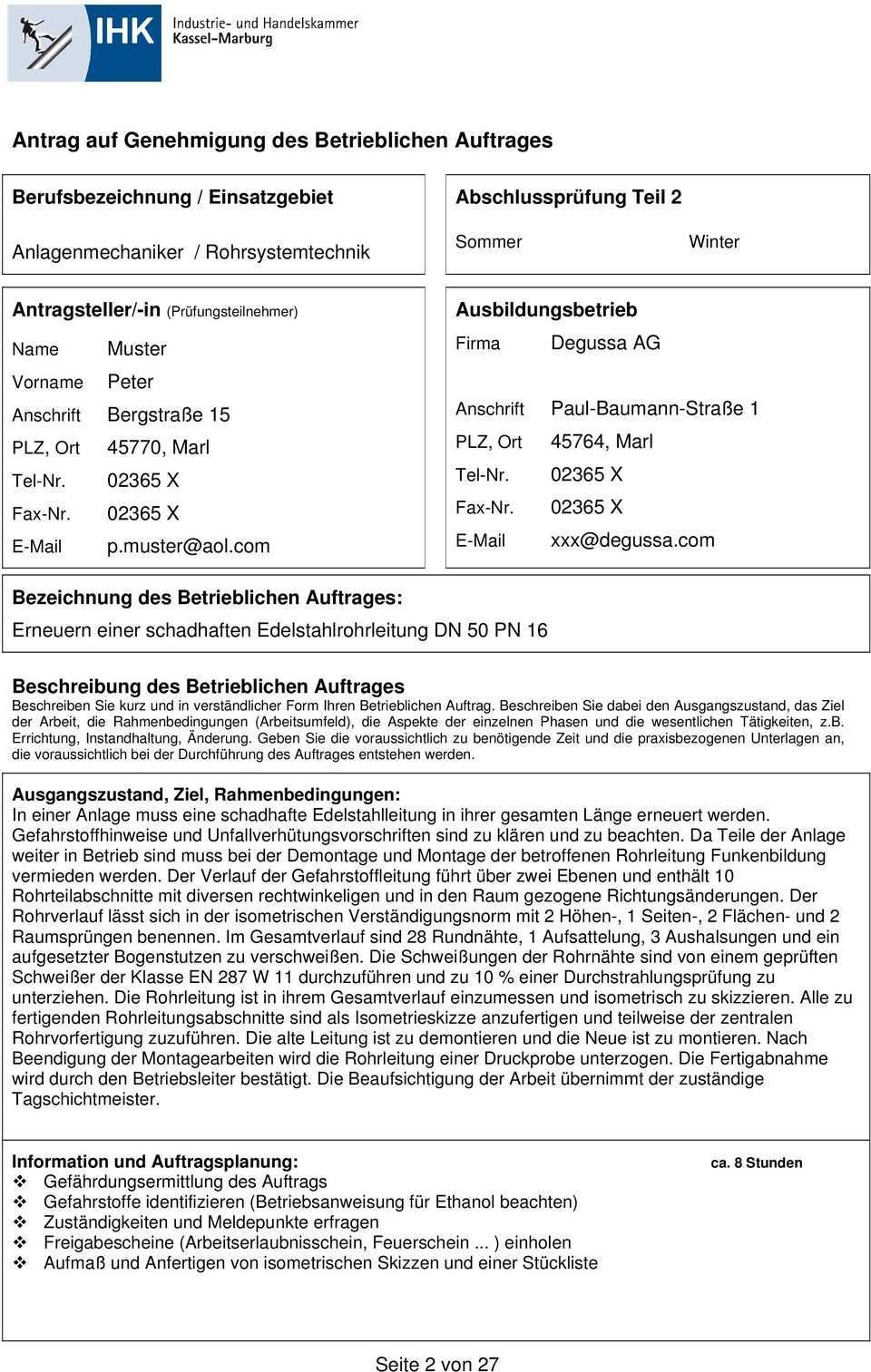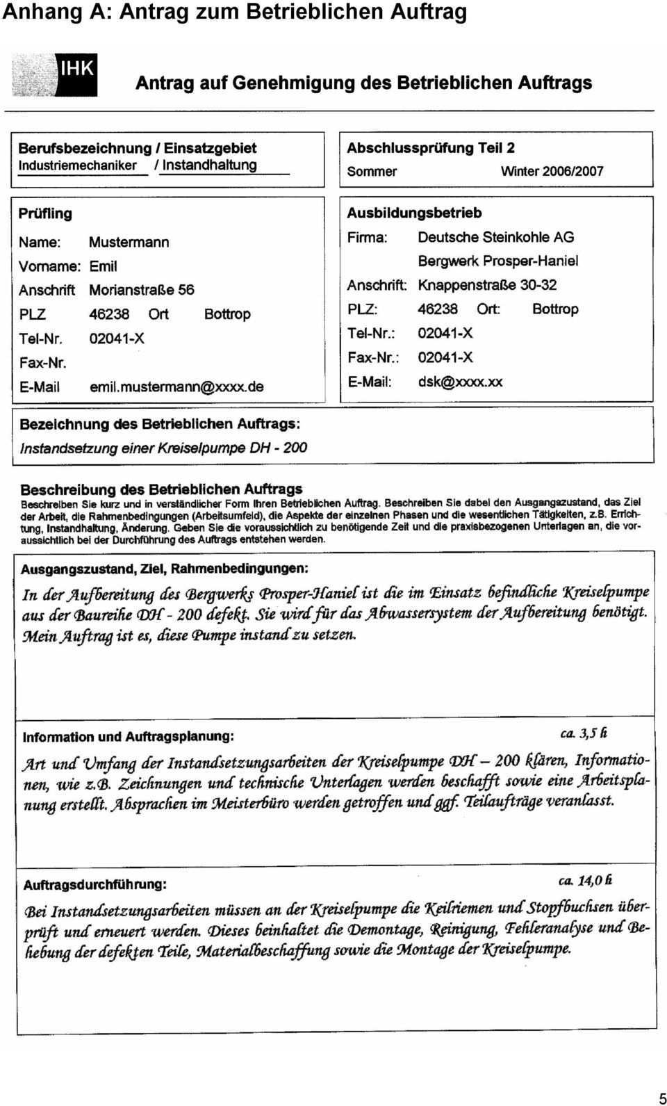 Betrieblicher auftrag muster. Die erläuterungen zu den einzelnen auftragsphasen sollen dem prüfungsausschuss einen überblick. Beschreiben sie kurzund in verständlicher form ihren betrieblichen auftrag. Konstruktion eines drehantriebs für die solarnachführung zum solartorque und konstruktion einer rahmenschweißvorrichtung. Beschreiben sie dabei den ausgangszustand das ziel der arbeit die rahmenbedingungen arbeitsumfeld die aspekte der einzelnen phasen und die wesentlichen tätigkeiten z b.