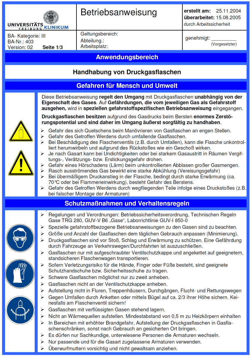 Gefahren für mensch und umwelt. Betriebsanweisung ba ist nur der oberbegriff über eine ganze reihe verschiedenster arbeitsanweisungen die bei arbeiten mit gefährlichen stoffen das können sowohl chemikalien als auch gentechnisch veränderte organismen sein komplizierten und oder gefährlichen maschinen sowie bei unfallgefährdeten tätigkeiten einen erprobten und sicheren arbeitsablauf gewährleisten sollen. Sowohl der download wie die verwendung sind kostenlos. Diese gefahren gilt es mit dieser betriebsanweisung durch schutzmaßnahmen und verhaltensregeln zu vermeiden.