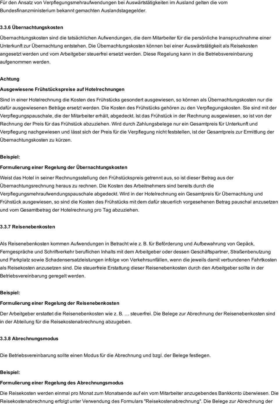 Zu den verhandlungen der betriebsvereinbarung xyz für den zeitraum. Diese betriebsvereinbarung findet anwendung auf alle mitarbeiter der firma mit ausnahme der mitarbeiter die ausschließlich nach den bestimmungen des bundes angestelltentarifvertrages bat behandelt werden. Die erstattung der reisekosten und spesen erfolgt nach der betrieblichen reisekostenordnung. 77 und 87 abs 2 betrvg folgende betriebsvereinbarung.