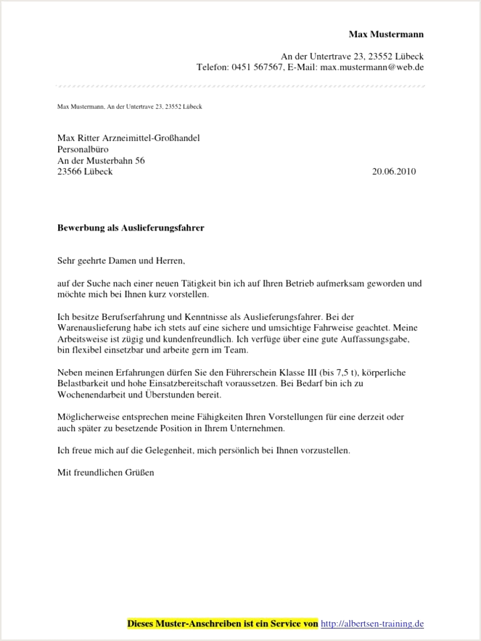 Ein bewerbungsschreiben ist in der regel nicht länger als 1 a4. Muster bewerbung als auslieferungsfahrer. Bewerbung als fahrer kostenloser download pdf. Beispiel gmbh herr muster beispielstraße 2 12345 beispielstadt beispielstadt den 01 01 2001.