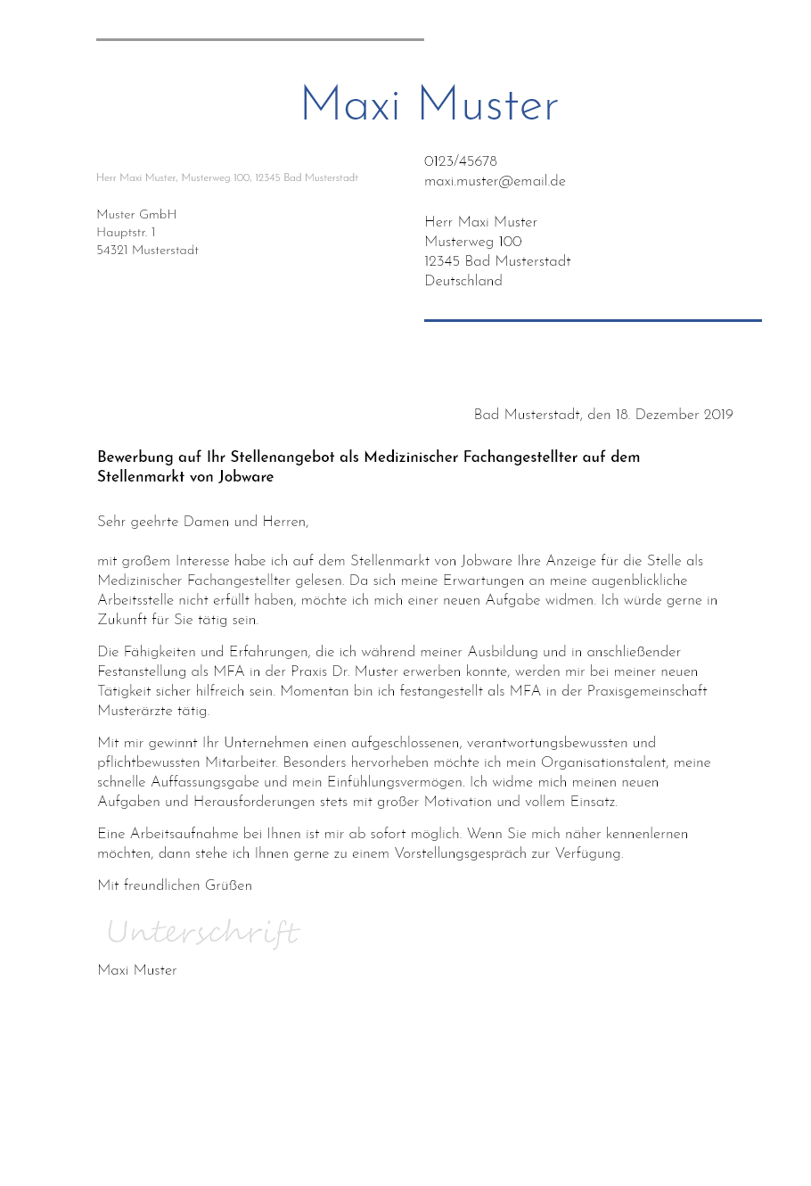 Ein bewerbungsschreiben ist in der regel nicht länger als 1 a4. Muster mit diesem schreiben bewerbe ich mich um eine stelle als arzthelferin in ihrer praxis für radiologie. Die muster umfassen alle üblichen dokumente einer bewerbung deckblatt bewerbungsschreiben und lebenslauf und können kostenlos heruntergeladen werden. Muster vorlage bewerbung kostenlos.