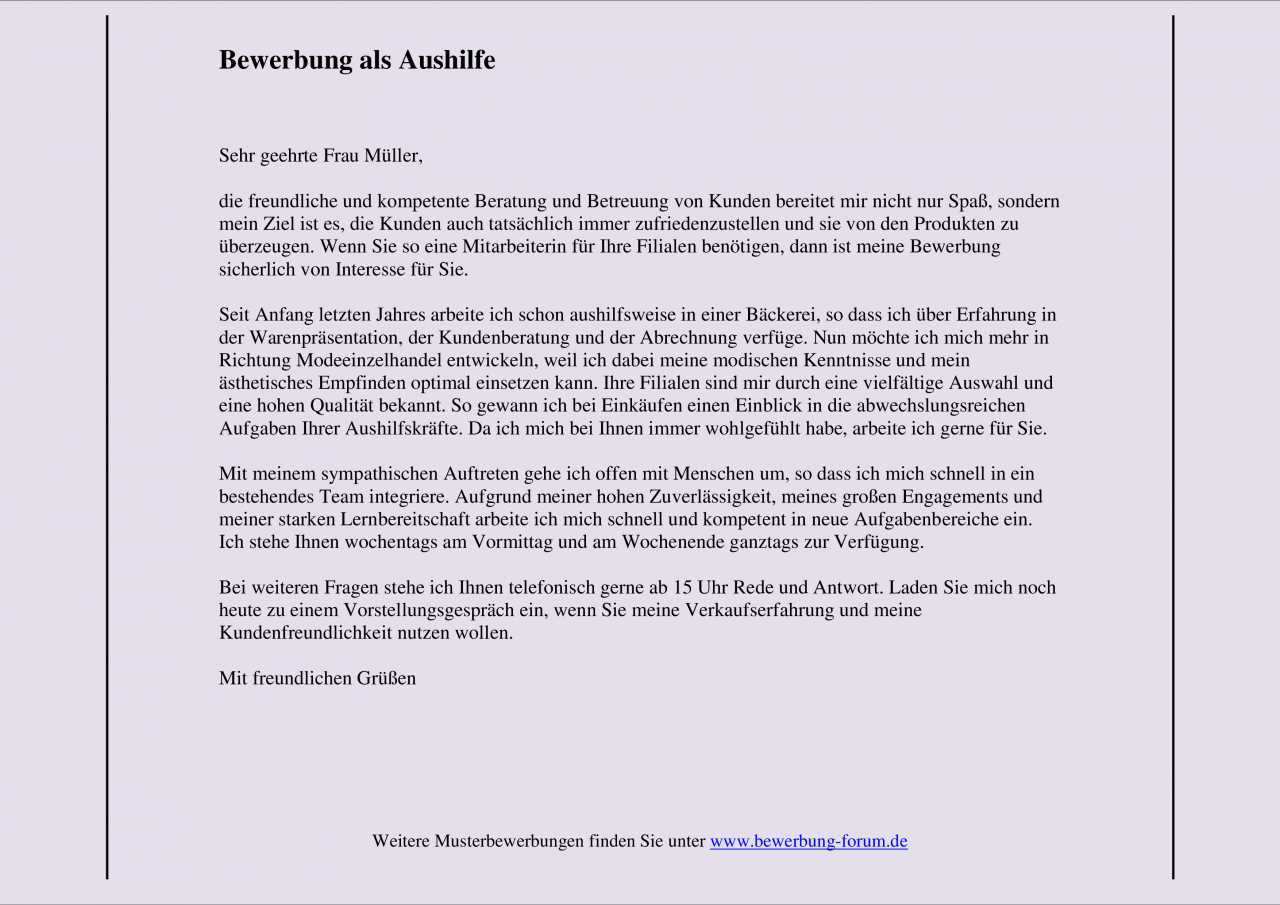 Diese setzt sich nach folgendem muster zusammen. Home muster bewerbung als aushilfe. Eine bewerbung als aushilfe ist kein hexenwerk. Wenn etwas falsch ausgedrückt ist oder da nicht reingehört einfach sagen.