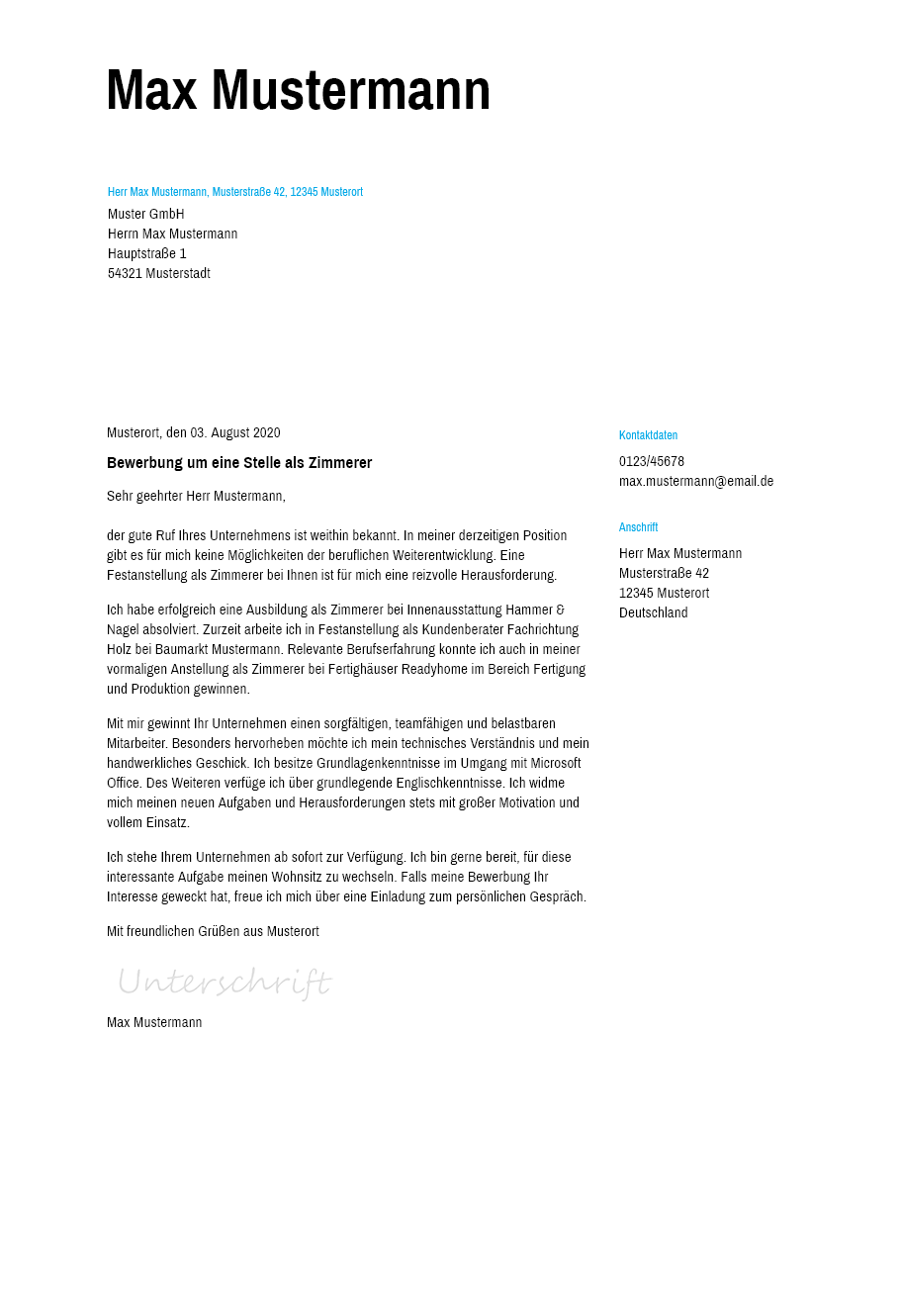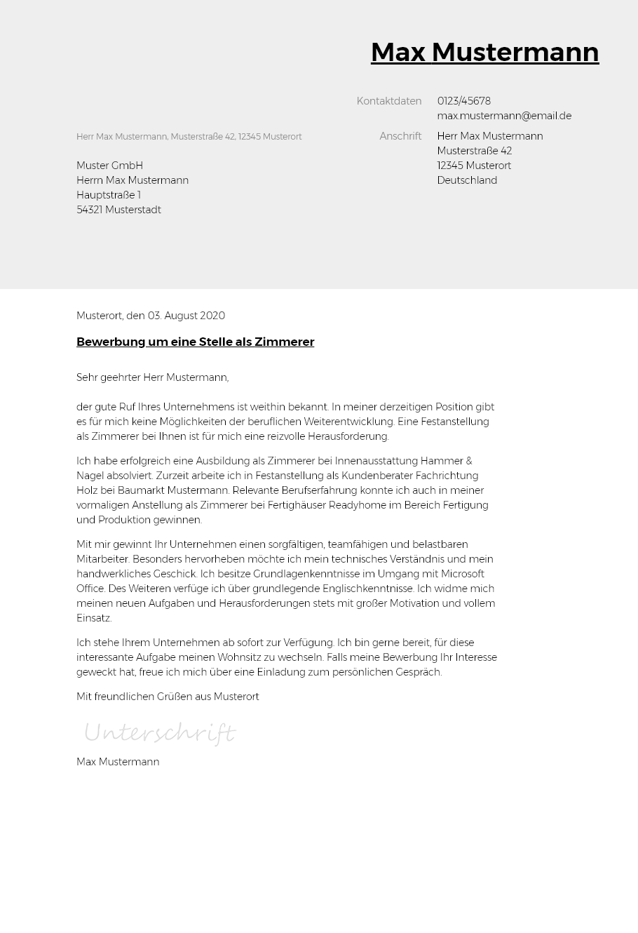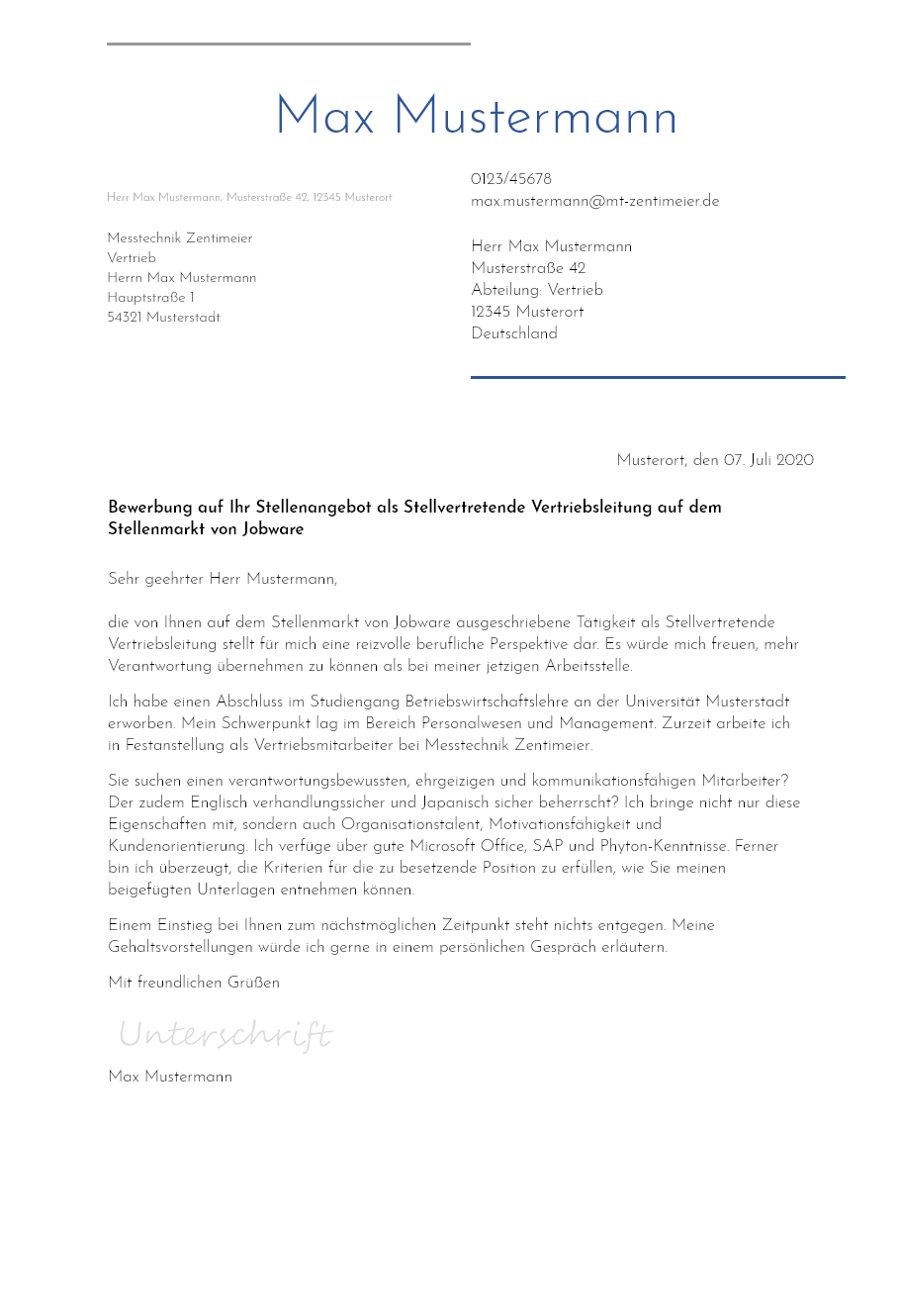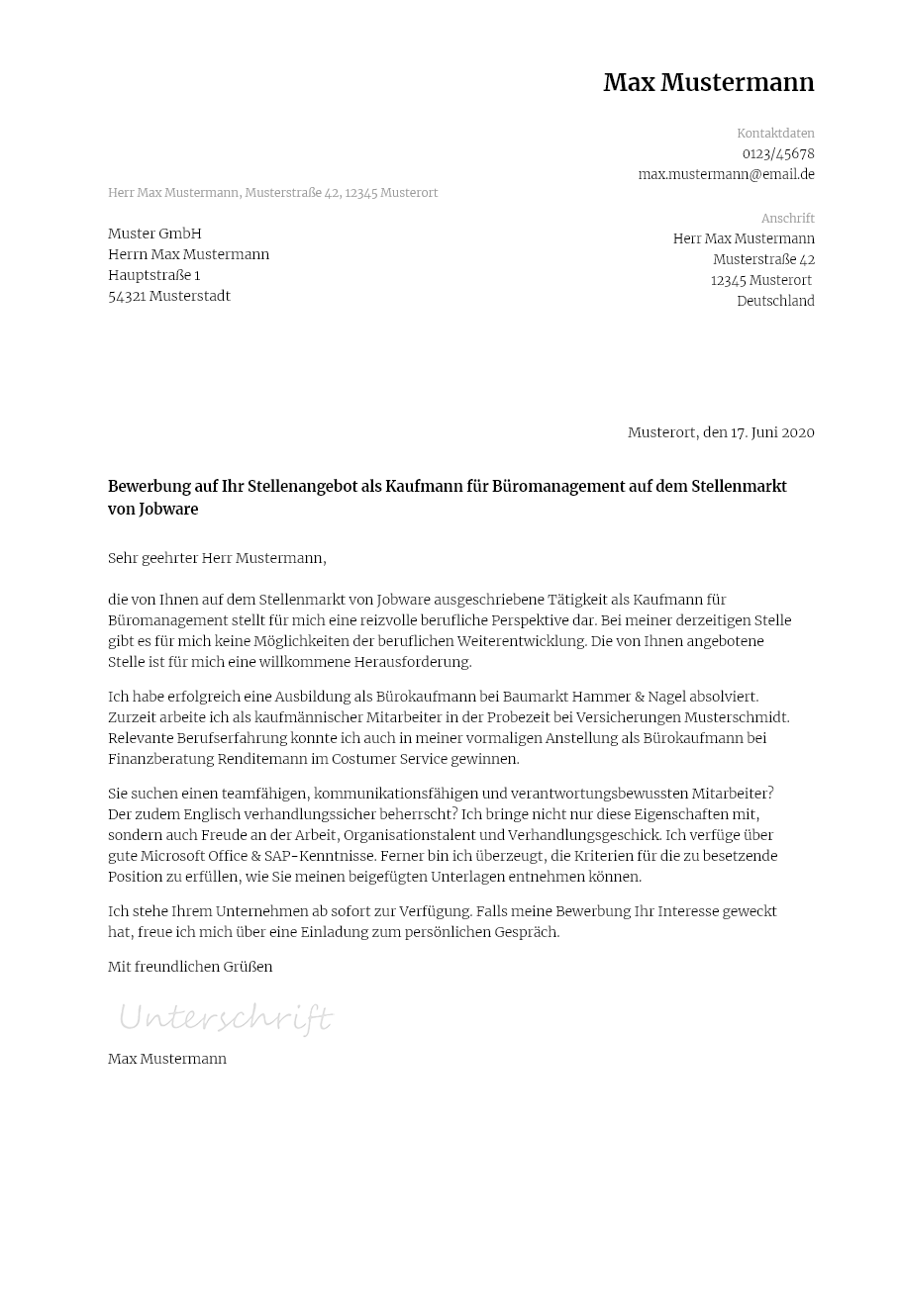 Sie finden die vorlage beziehungsweise das muster für das bewerbungsschreiben.