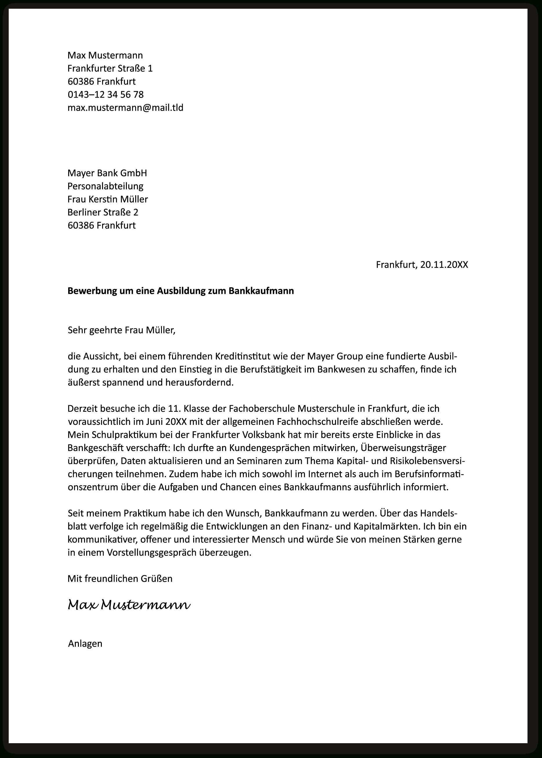 Wenn du deinen wunsch nach einem jobwechsel gut begründest überzeigt dein anschreiben im handumdrehen. 59 verfügbare muster bewerbungsschreiben bewerbungsanschreiben. Das bewerbungsschreiben auch als bewerbungsanschreiben bezeichnet steht bei der reihenfolge der bewerbungsdokumente direkt hinter dem deckblatt in diesem dokument können sie den leser ihrer bewerbung beispielsweise über die motivation ihrer bewerbung informieren und weitere relevante informationen welche sich nicht für. Frankfurt main als bankenstandort hat mein interesse geweckt da ich meine ausbildung als bankkaufmann frau bei der bank in abgeschlossen habe.