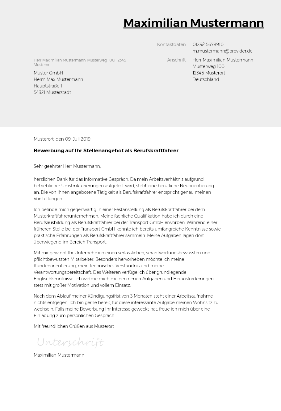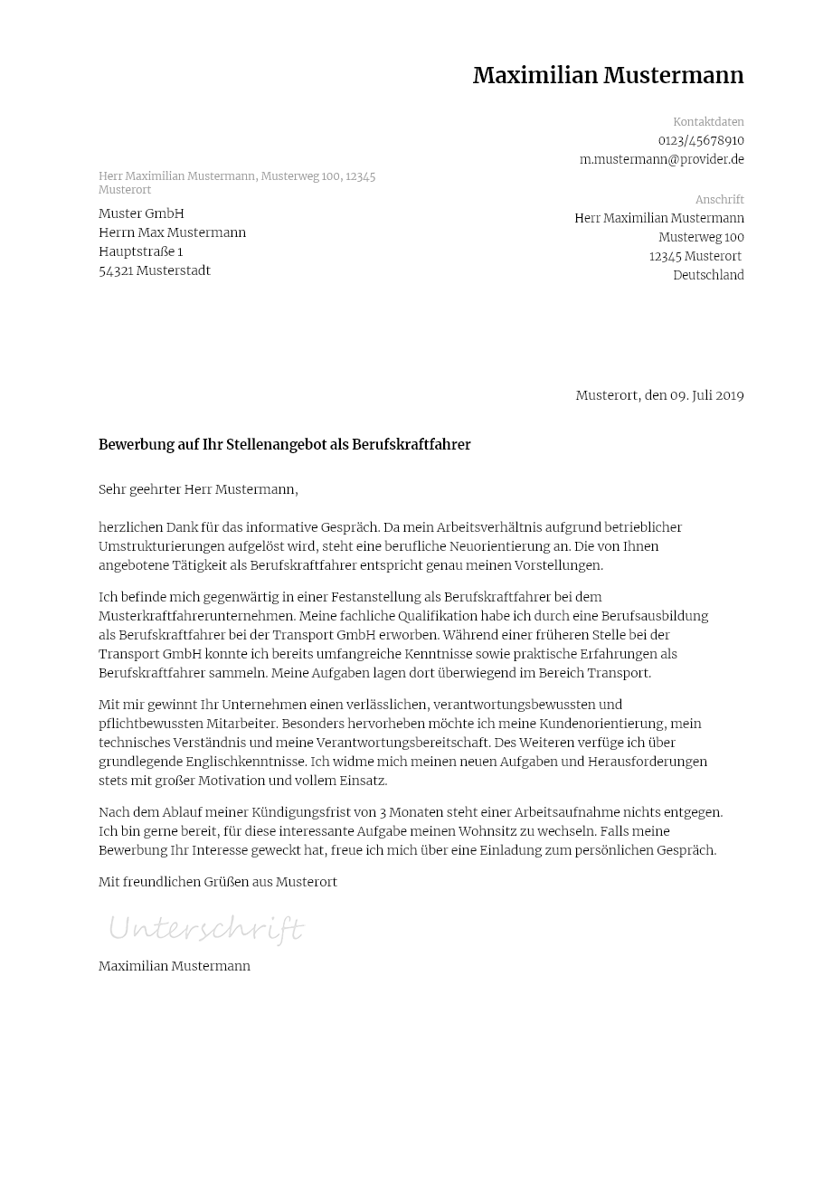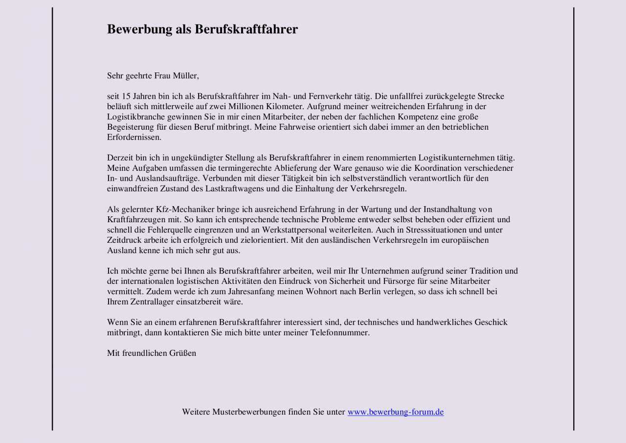 Ein bewerbungsschreiben ist in der regel nicht länger als 1 a4. Muster bewerbung als berufskraftfahrer.