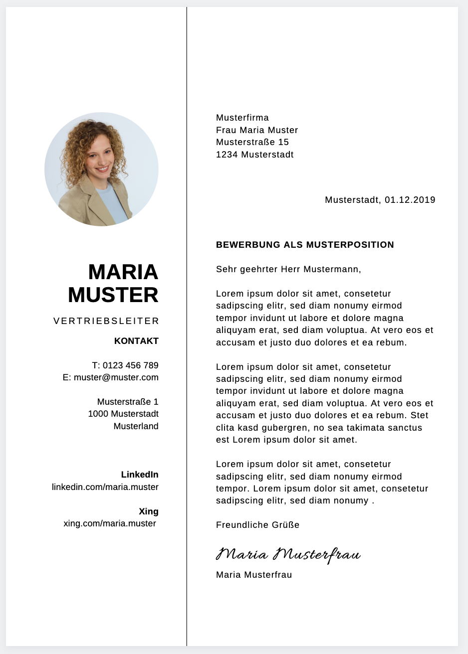 Bewerbungsmuster muster vorlage. Mache diesen brief baue deinen eigenen brief max hubert meier max hubert meierheinestraße 5 12345 oberstadtmax meier gmx789 de 01234 56789001 01 1960 sehr geehrter herr müller als talentierter fotograf habe ich mit großem interesse ihre stellenanzeige gelesen in der sie einen erfahrenen fotografen für die picture gmbh suchen. Du darfst dieses muster nicht einfach abschreiben und abschicken. Beispiel für ein bewerbungsanschreiben als fotograf in sehr geehrte damen und herren mit meiner unkomplizierten art und mit meinen einschlägigen erfahrungen als fotografin die immer genau den moment einfängt der für sich spricht kann ich ihrer bekannten und erfolgreichen werbeagentur möglicherweise von großem nutzen sein.