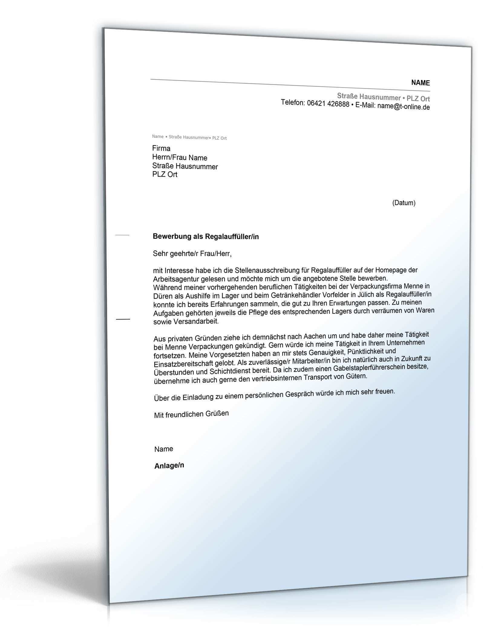 Bewerbung regalauffueller muster. Muster hier als doc herunterladen und für die perfekte bewerbung verwenden. Dieses muster bewerbungsschreiben als regalauffüller ist wie alle anderen muster bewerbungsvorlagen nur als beispiel gedacht. Karriereberatung ihr vollständiger leitfaden zum schreiben eines anschreibens für 2020 body of the letter. Es stehen bewerbungsschreiben für berufstätige und für auszubildende zum download bereit.