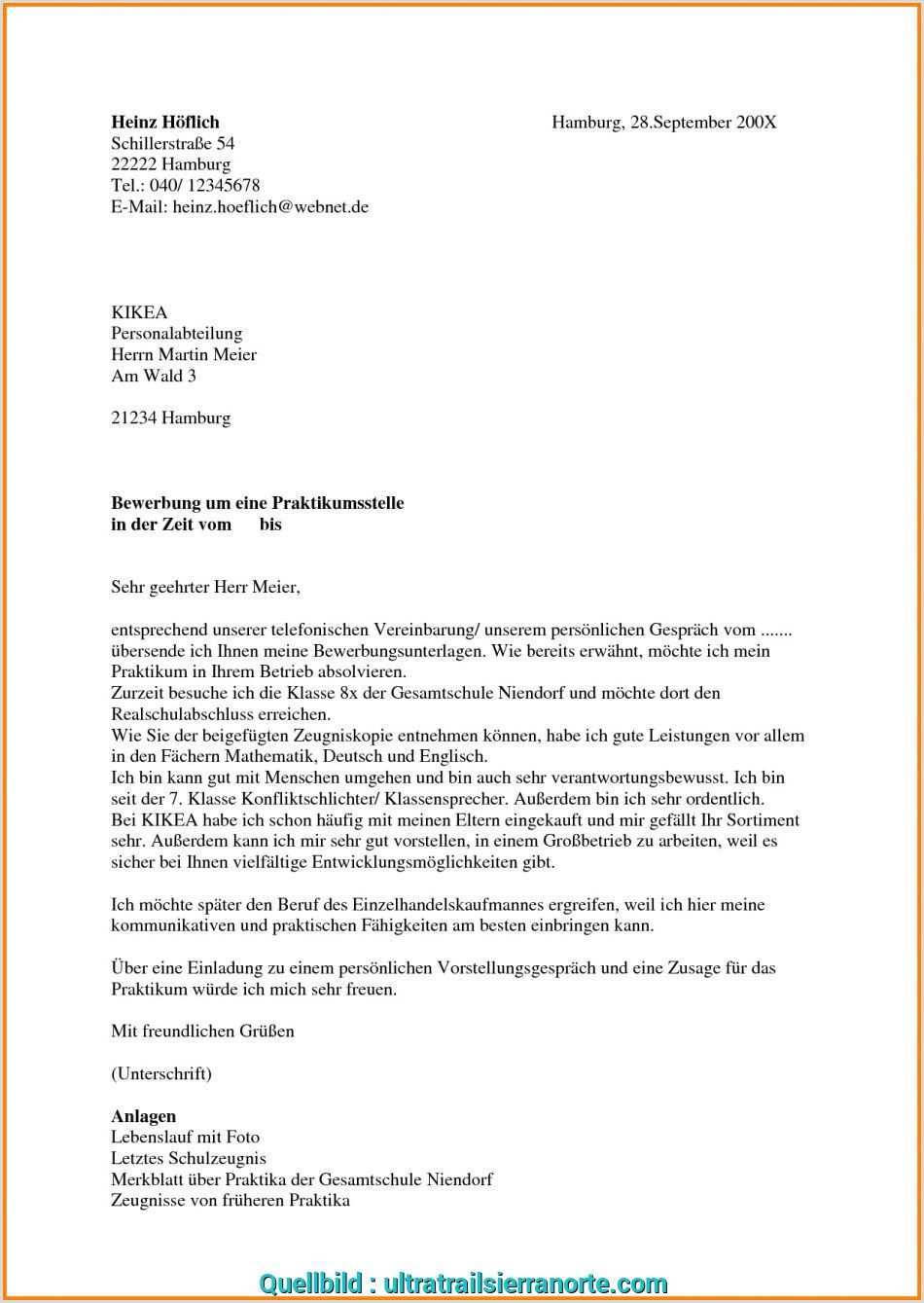 Bewerbung Schuelerpraktikum 9 Klasse Muster