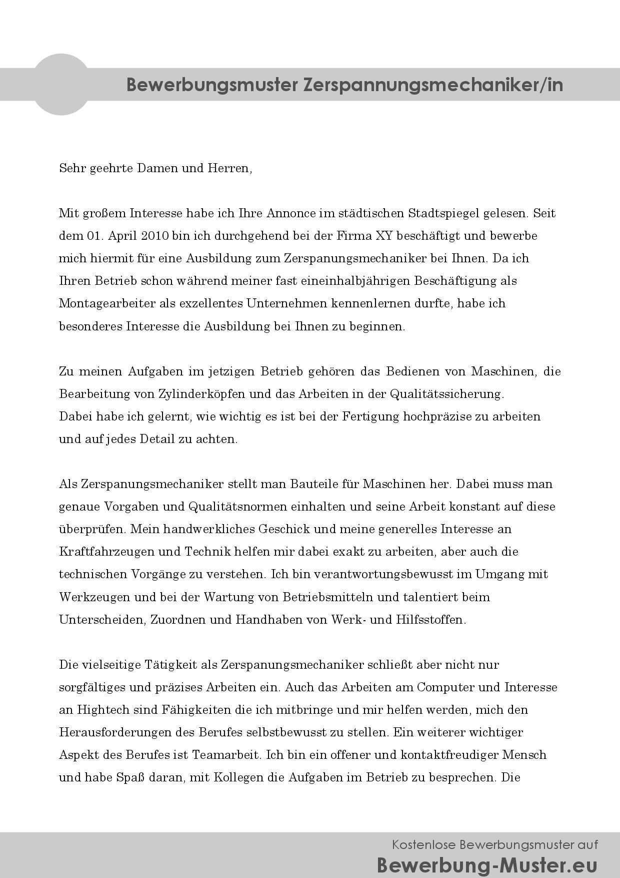 Bewerbung als zerspanungsmechaniker für xy sehr geehrter herr y sehe geehrte frau x falls nicht zu erfahren. Zerspanungsmechaniker bewerbung muster ausbildung hier besteht die möglichkeit über anschreiben für die ausbildung für praktika und für das studium duales studium universität ba mit anderen mitgliedern zu diskutieren. Beispielsätze und muster bewerbungsschreiben für die ausbildung zur zerspanungsmechanikerin. Diese und weitere vorlagen zum bewerbungsanschreiben gibts hier zum download.