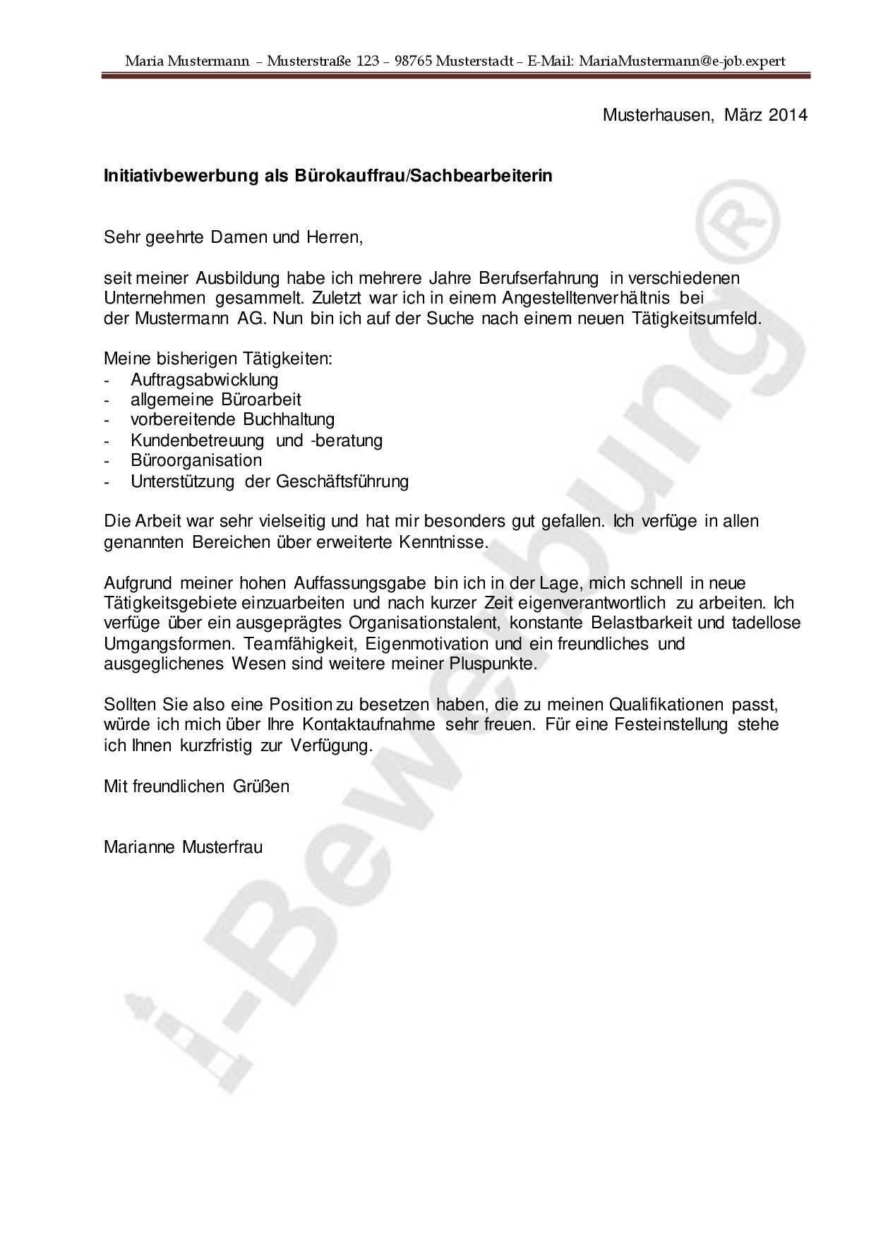 Bewerbungsschreiben Buerokauffrau Muster