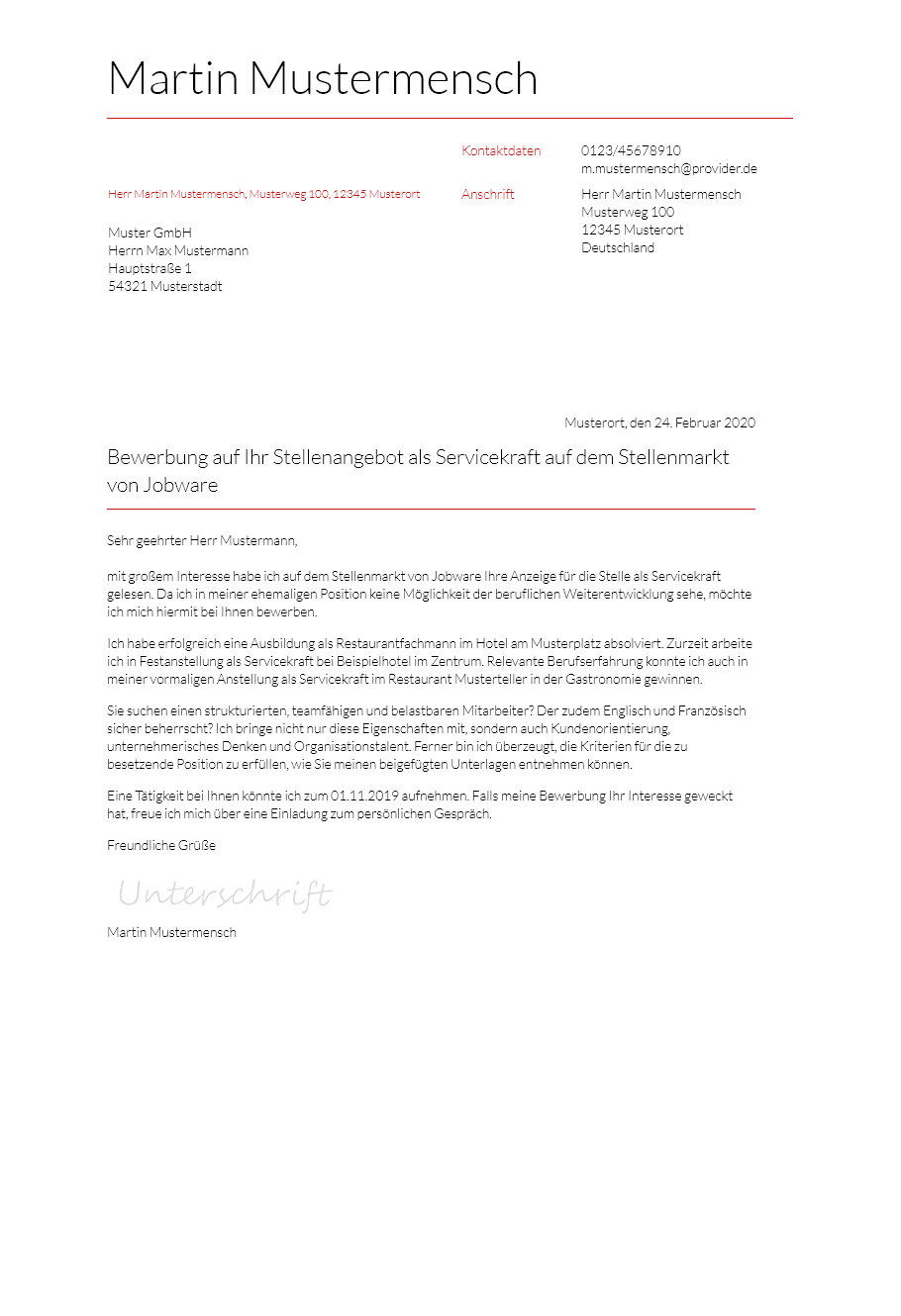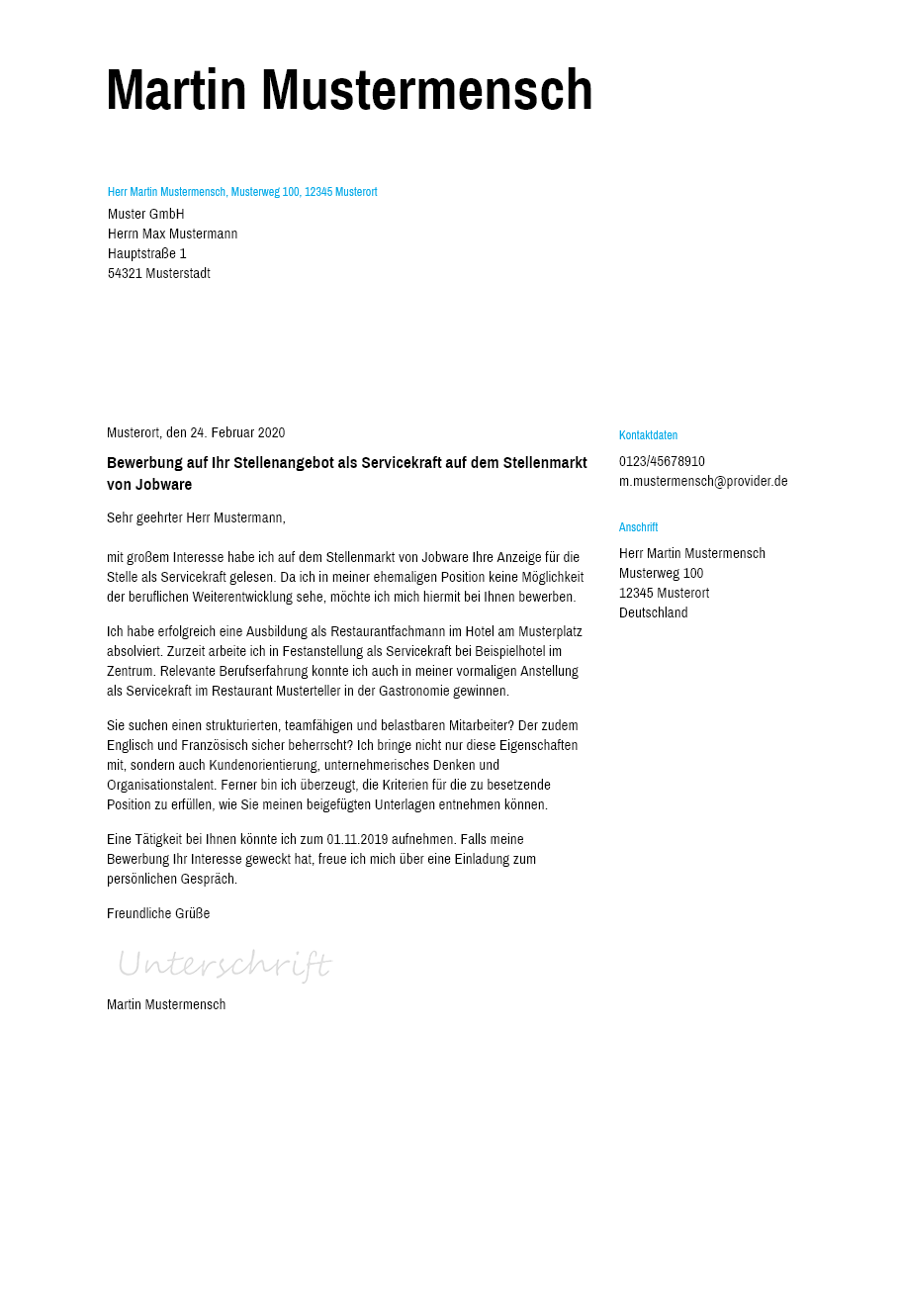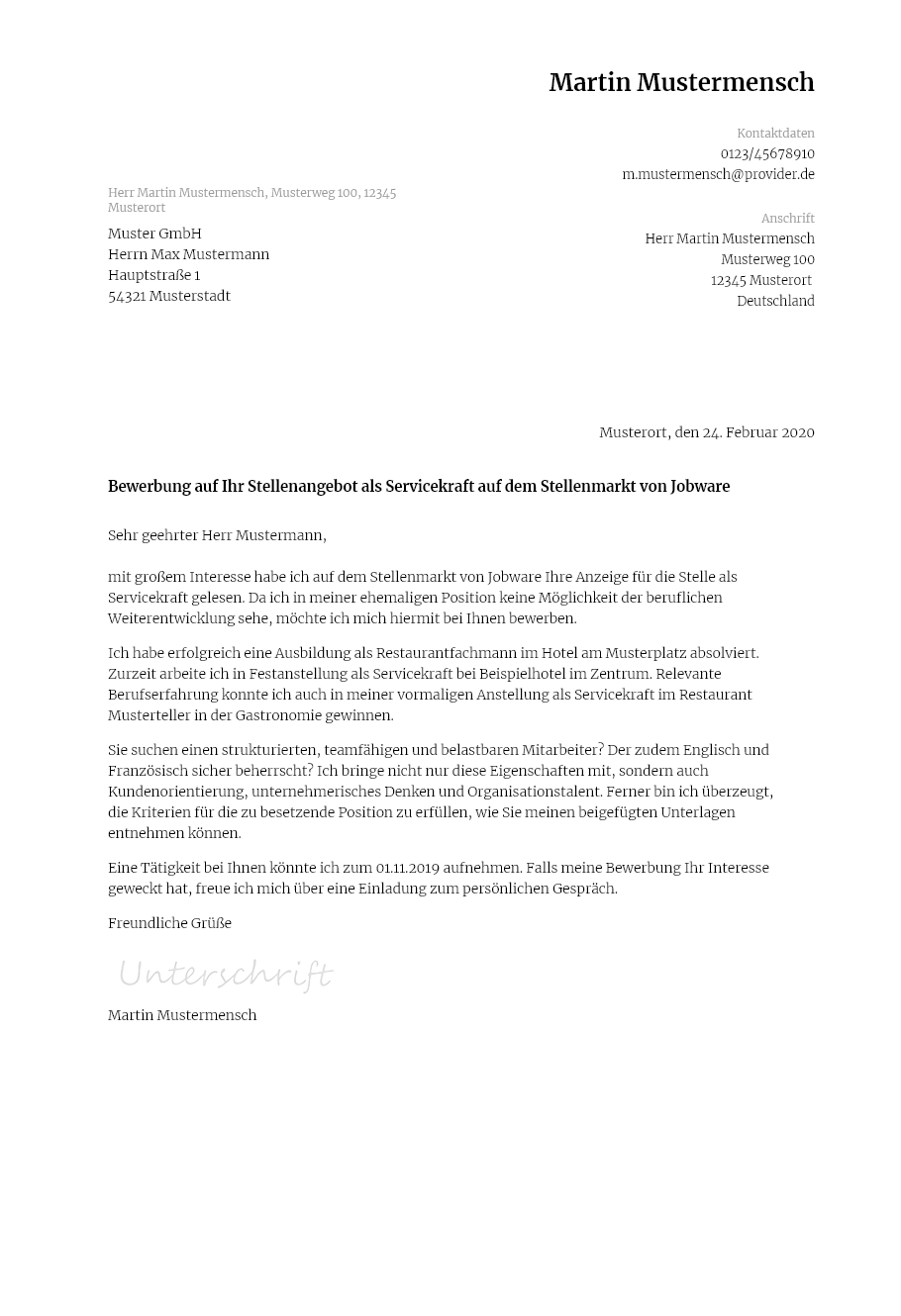 Sämtliche vorlagen auf dieser seite sind für servicekraft formuliert und stehen auch als word dokument zum kostenlosen download. Ich freue mich darauf von ihnen zu hören. Bewerbung als servicekraft muster bewerbungsschreiben aufgaben tätigkeiten. Bewerbungstipps bewerbungsschreiben bewerbungsvorlagen muster bewerbung.