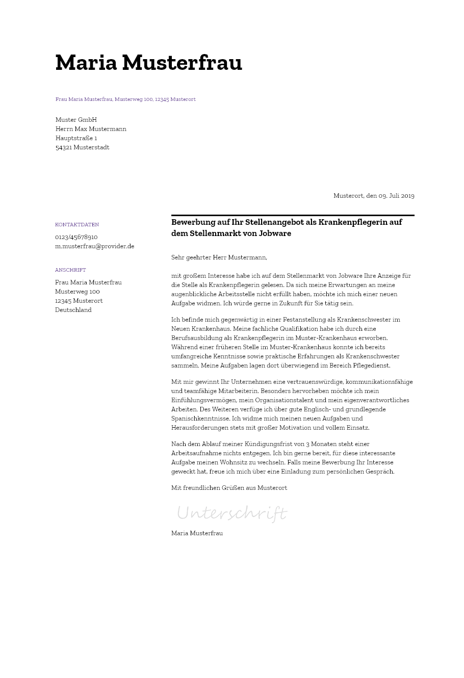 Die muster dokumente wurden speziell für diesen beruf erstellt. Laden sie unsere registrierte krankenschwester anschreiben probe unten um die herstellung des perfekten anschreibens zu beginnen. Vielen dank dass sie meine bewerbung in betracht gezogen haben. Aufgrund der vielzahl von bewerbern kommt es auf eine überzeugende und aussagekräftige bewerbung an die zeigt dass sie kundenfreundlich belastbar und ausdauernd sind.