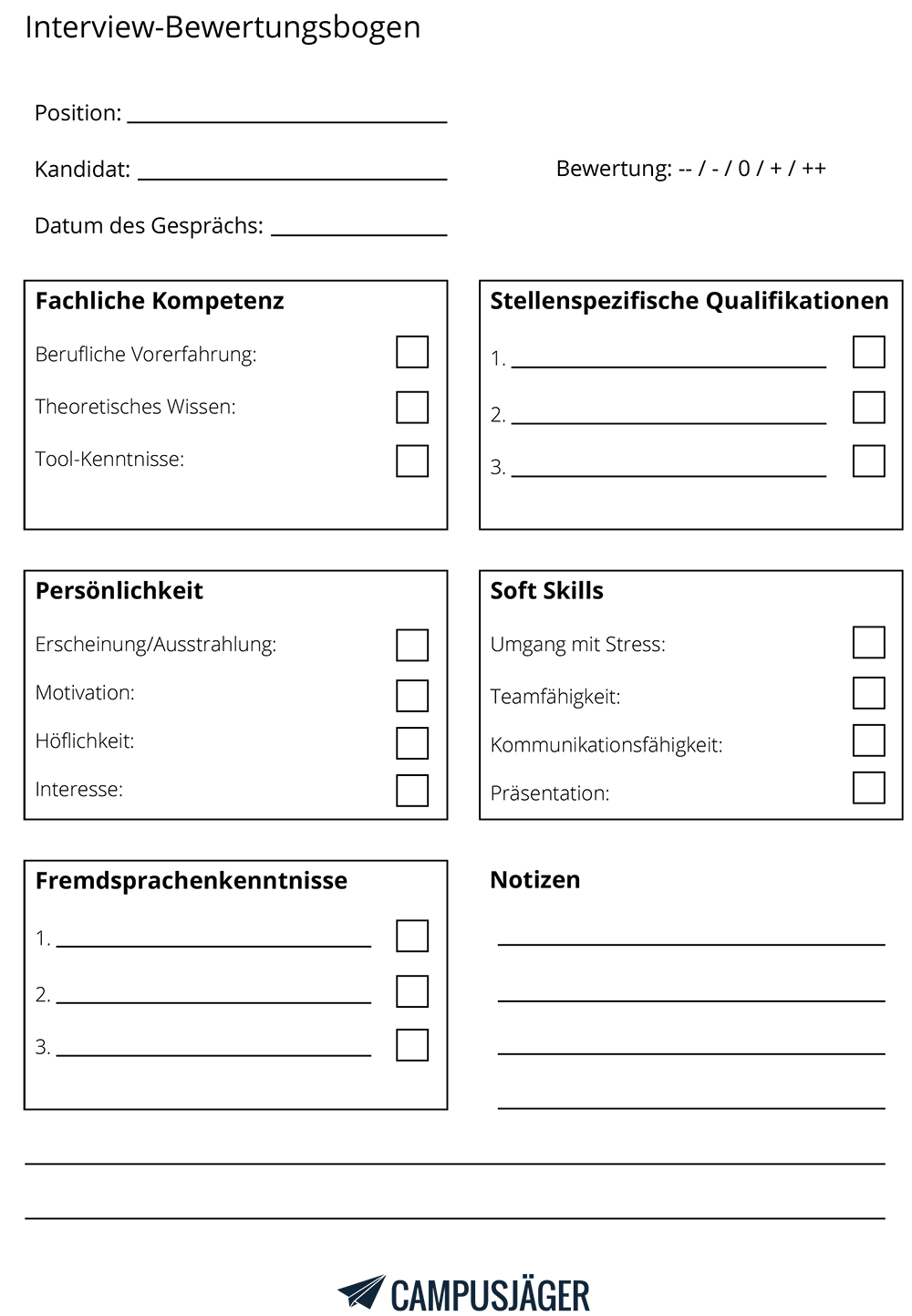 Unser auswertungsbogen im pdf format zum kostenlosen download erleichtert ihnen die arbeit. Arbeitet ihr unternehmen mit einem muster ist es wichtig dass allen interviewern das gleiche formular zur verfügung gestellt wird.