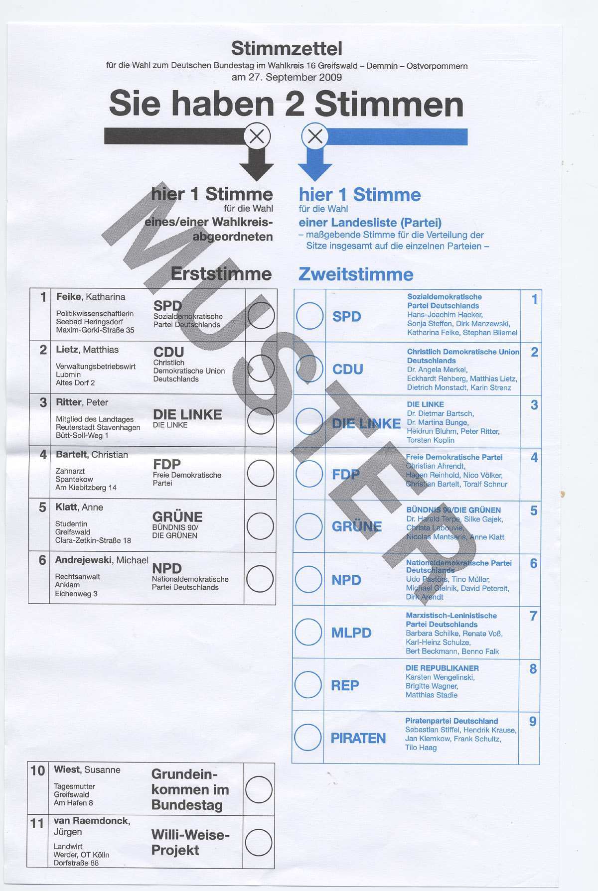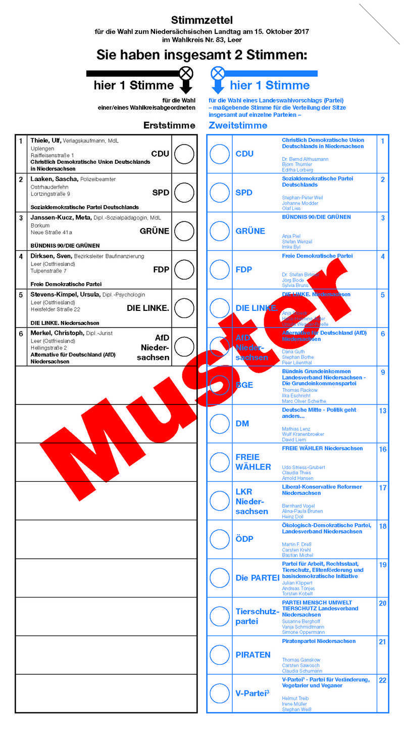 Um die stimmzettel zu erhalten muss nachgewiesen werden dass man wählen darf. Wie sie ihn mit erststimme und zweitstimme richtig ausfüllen. Es muss nicht unbedingt ein kreuz sein das am wahlsonntag auf den stimmzettel gesetzt wird. Sie können auf diesem musterstimmzettel stimmen vergeben indem sie auf die hierfür vorgesehenen felder klicken.