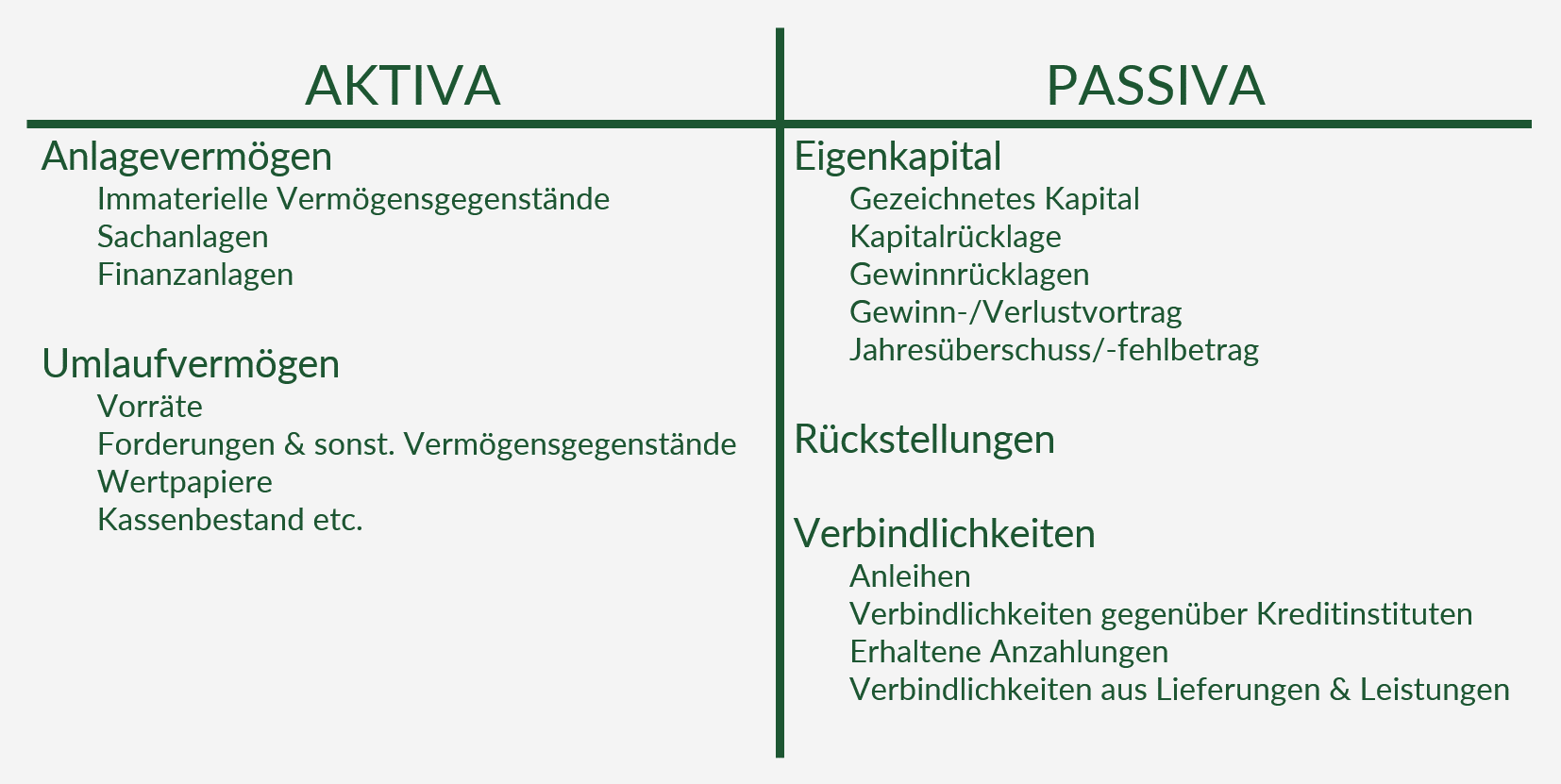 Inhalte im bereich die bilanz. Du addierst also immer entweder alle werte im aktiva oder alle werte im passiva der bilanz um die bilanzsumme zu berechnen. Die im inventar einzeln aufgeführten positionen werden in der bilanz zu sogenannten bilanzposten zusammengefasst und der jeweiligen aktiv oder passivseite der bilanz zugeordnet. Die bilanz wird in form eines t kontos abge bildet und beste ht aus der aktiv und der pas siv seite.