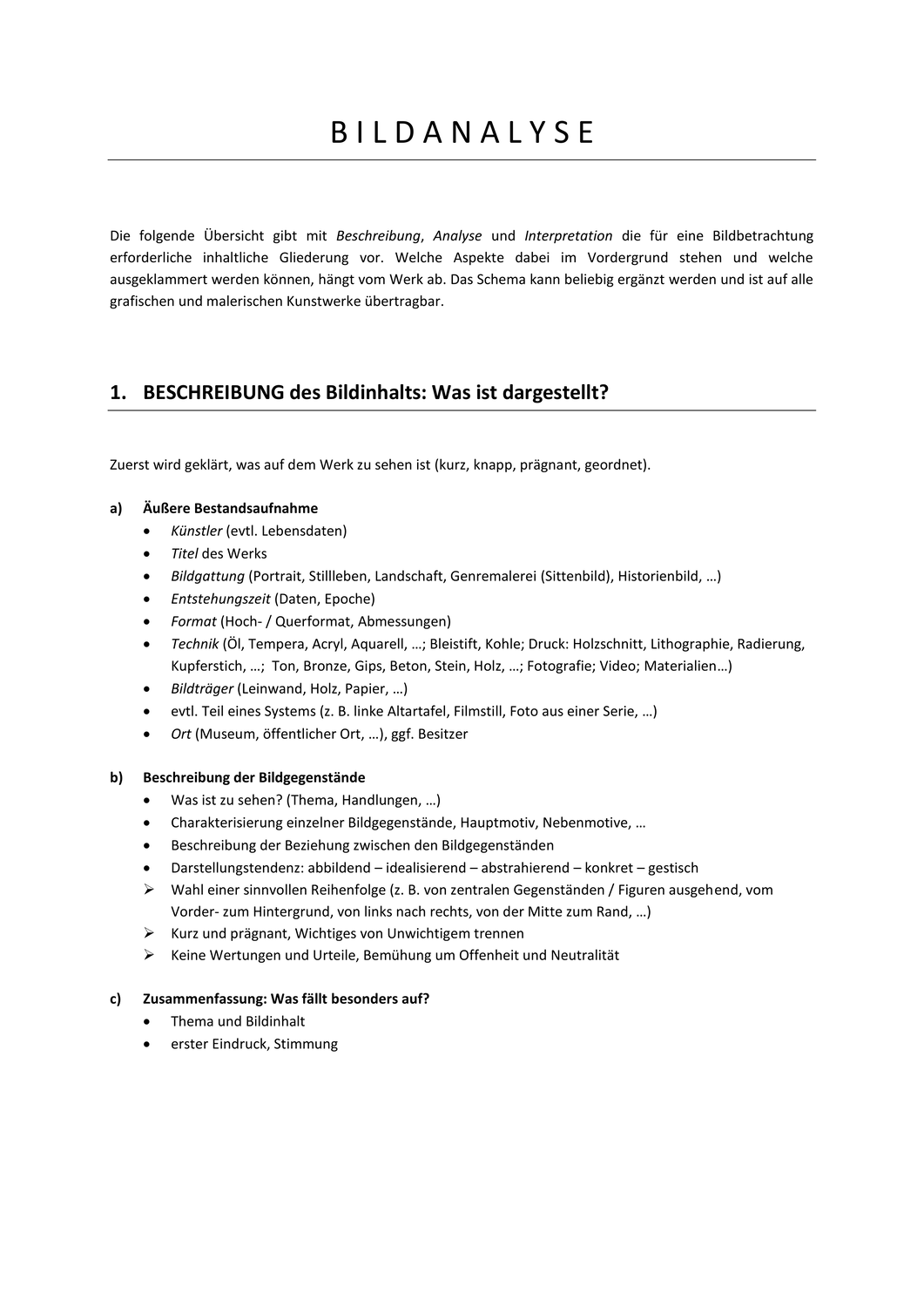 Bildanalyse muster bildanalyse abipedia. Auf amazon ansehen bei bildquellen findet ihr fast immer zusätzliche informationen zur quelle in textform da ihr den urheber die umstände das datum und den ort der veröffentlichung häufig nicht direkt aus dem bild entnehmen könnt. Der aufbau einer bildanalyse. Halte deinen persönlichen ersten eindruck fest.