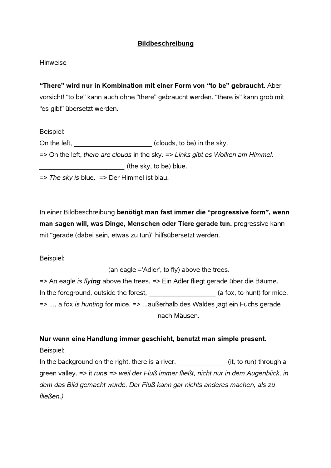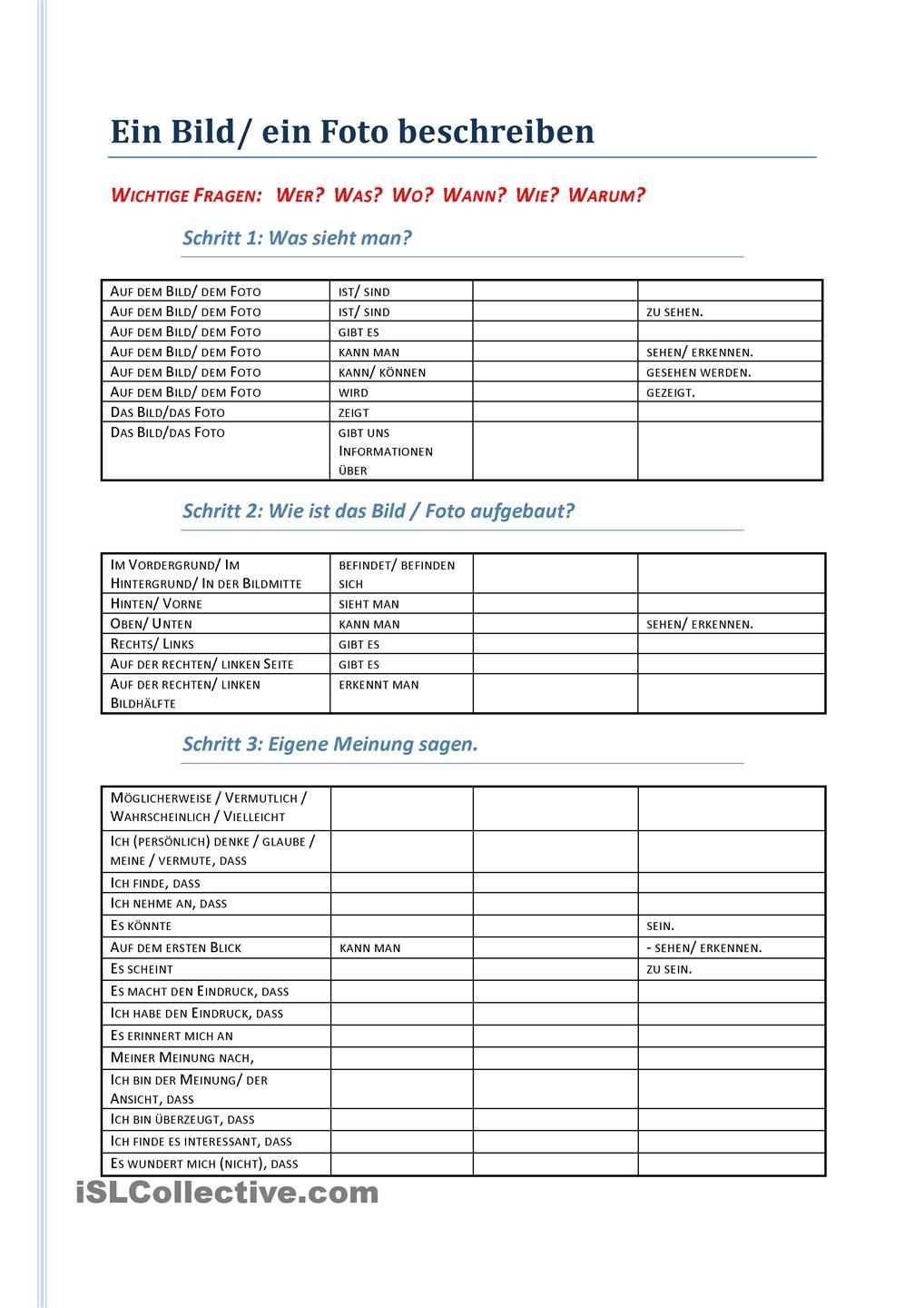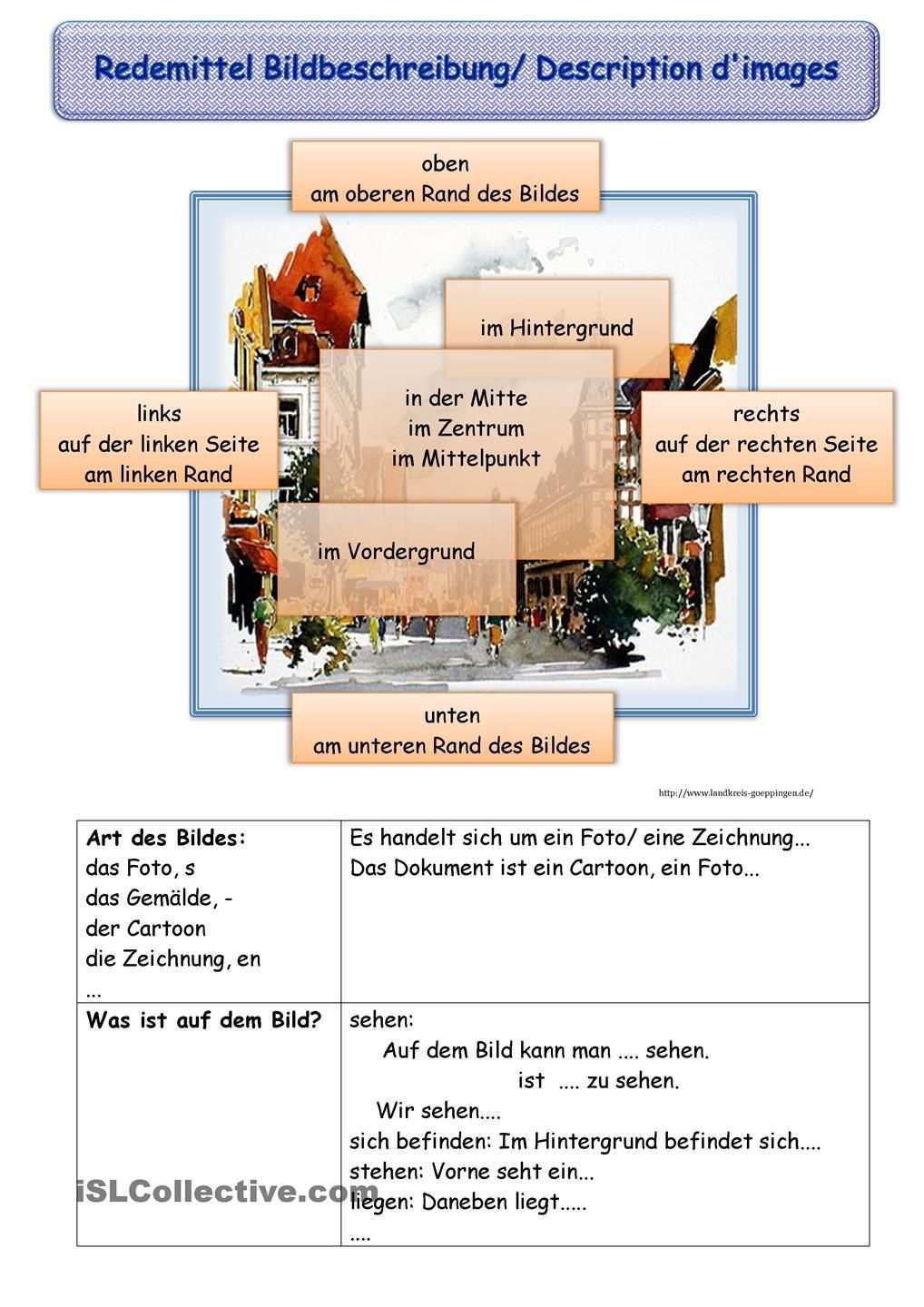 Als ergänzung zu den sprachlichen tipps für englisch haben wir auch einen guide zur bildbeschreibung geschrieben damit du hilfe für den aufbau einer bildbeschreibung bekommen kannst. Beispiel für eine bildbeschreibung auf englisch. The x was taken by künstler deals with kern thema. This picture is a watercolour painting.