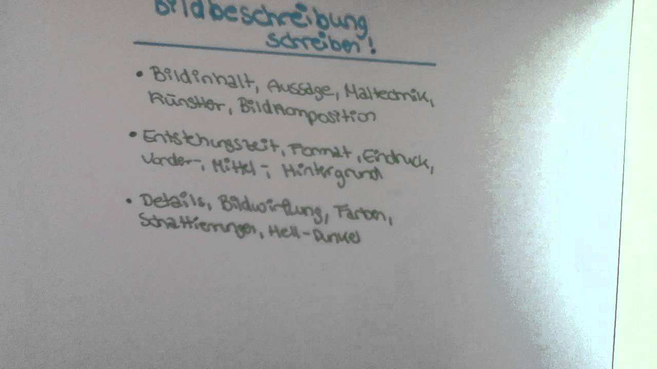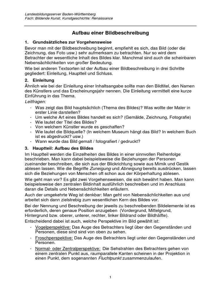Nun gehen sie bei der bildbeschreibung für kunst durch die verschiedenen bildebenen und beschreiben was sie sehen. Bildbetrachtung kunst beispiel outdoor bilder günstig bestelle. Das bild zeigt einen mann der in einer spärlich eingerichteten dachstube auf einer matratze liegt. Beispiele und wichtigste merkmale für eine gute bildbeschreibung.
