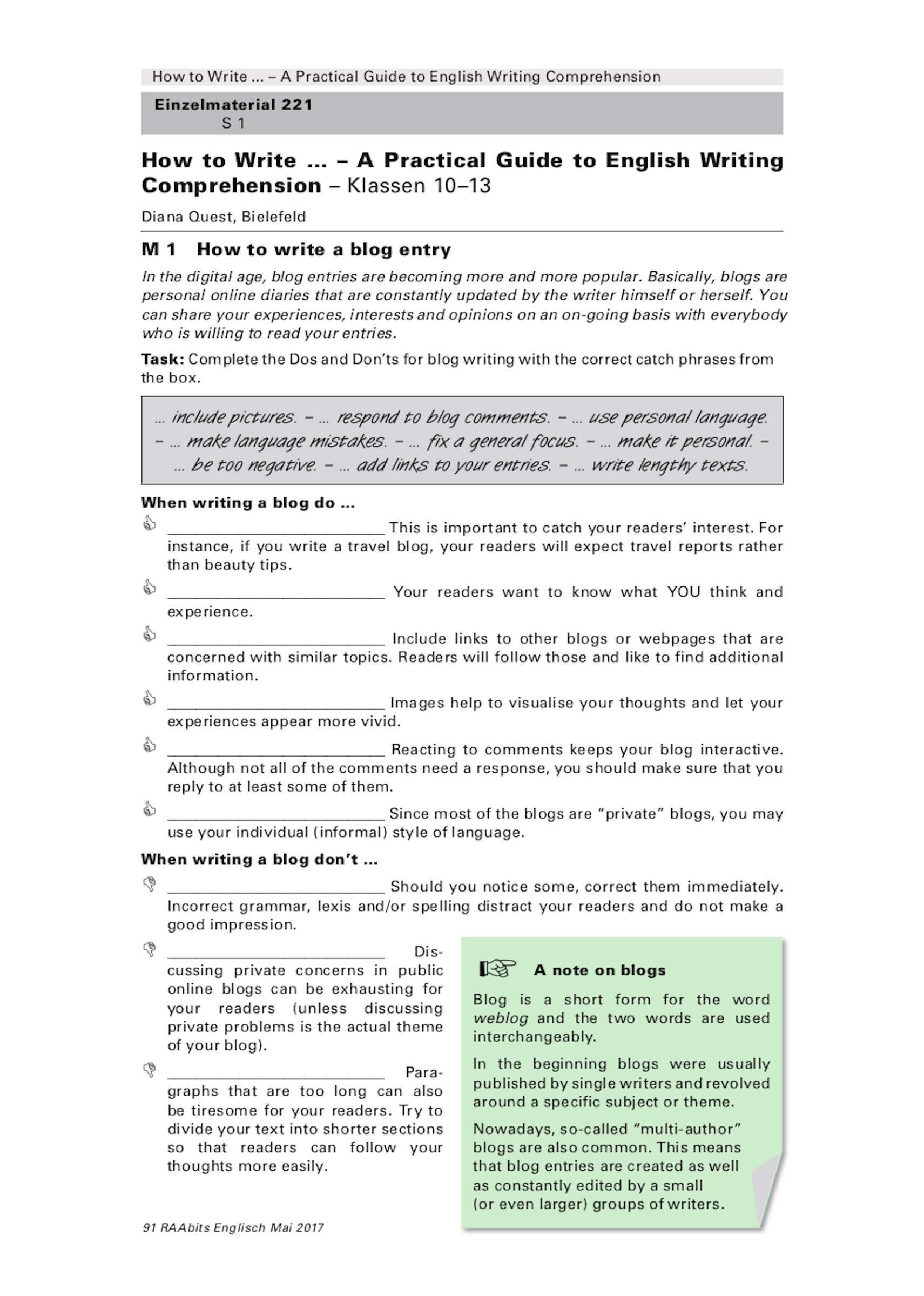 Blog schreiben englisch beispiel. Verfassen sie einen informativen blogeintrag auf englisch in dem sie die zentralen aussagen des sozialforschers nils zurawski über die. Besser und anschaulicher auf englisch schreiben zu lernen ist auf dem weg fließend englisch zu sprechen eine wichtige schlüsselkompetenz. Im unterrichtsgespräch werden erste ideen gesammelt z. Ich habe das thema reisen gewählt weil ich viele fotos sollen wir auch verwenden und auch viele erlebnisse habe.