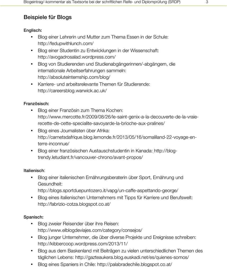 Wäre echt nett d ich gehe auf ein bk für fremdsprachen d schon mal danke. Lese dir diese 12 hilfreichsten tipps zum thema schreiben auf englisch durch und finde heraus wie dir englischsprachige bücher musik tagebücher und co. The following text is an example for a blog according to the task above. Teil des projekts ist ein blog in dem auch die position von experten veröffentlicht wird.