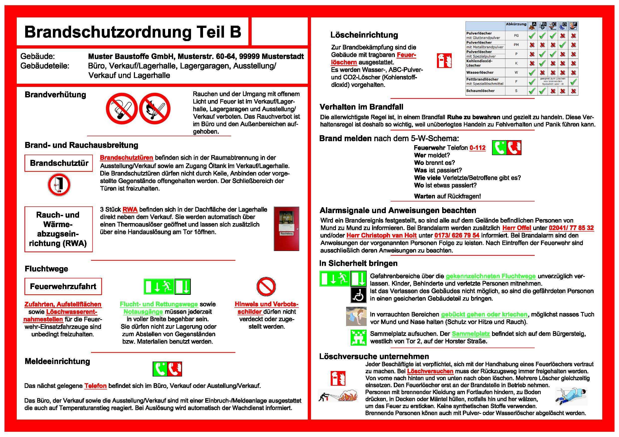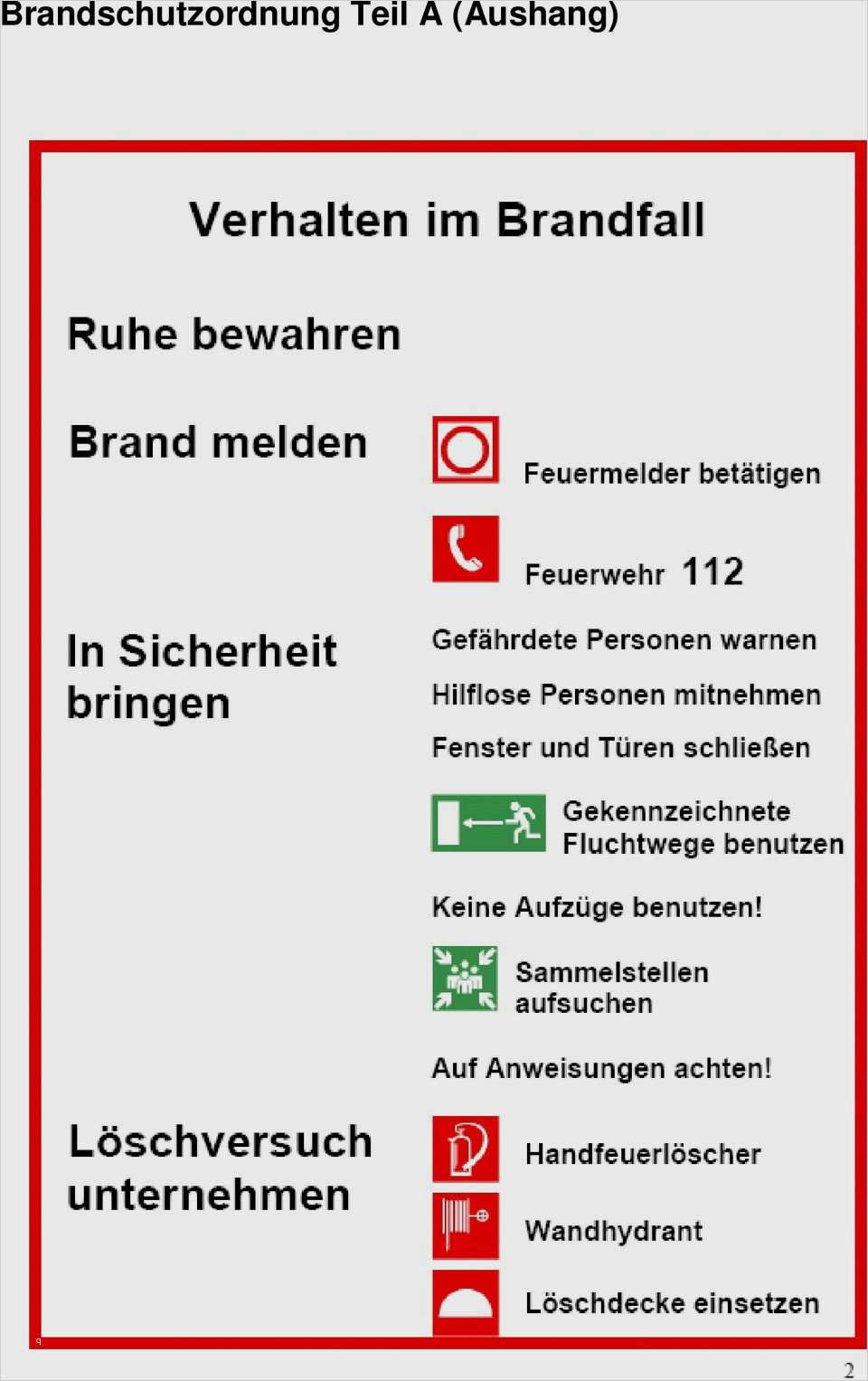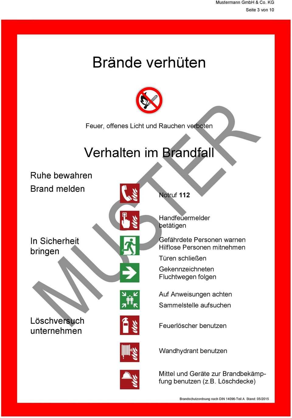 Die brandschutzordnung teil a hängt für jeden frei einsehbar im gebäude aus. Laden sie sich jetzt unser 72 teiliges praxispaket für brandschutzbeauftragte und fachkräfte für arbeitssicherheit sofort hier kostenlos herunter. Brandschutzordnung teil a b und c wir haben ein muster für sie. Brandschutzordnung teil b gemäß din 14096 2014 05 seite 10 von 15 6 löschmaßnahmen das personal für gefahrenabwehr die kräfte der brandschutzfunktionsstellen selbsthilfekräfte neh men ihre aufgaben entsprechend teil c der brandschutzordnung und den unterweisungen durch den brandschutzbeauftragten wahr.