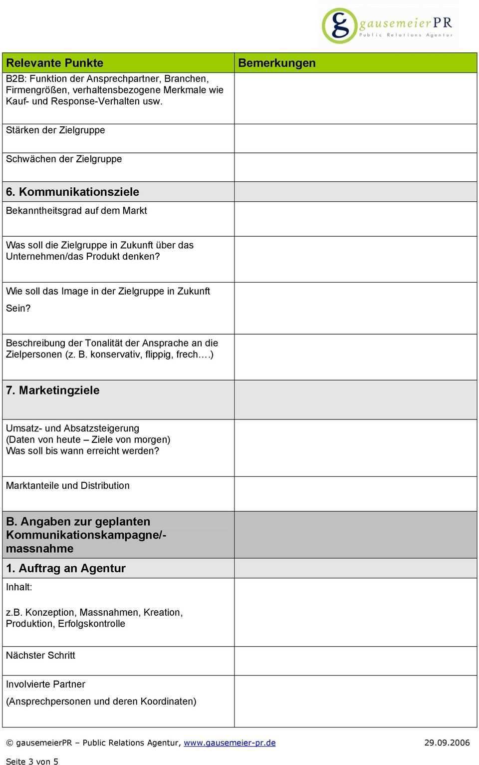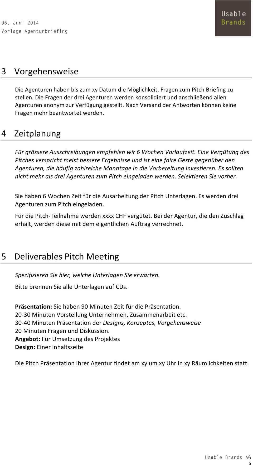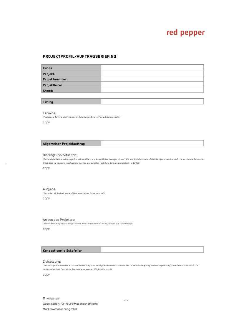 Briefing Agentur Vorlage