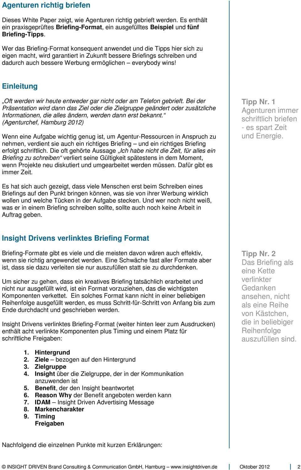 Die zusammenarbeit mit einer pr marketing oder werbeagentur kann von großem vorteil sein. Nutzen sie unsere checkliste mit vielen tipps für die fundierte und effiziente erstellung von einem briefing für die internetagentur. Mit einem briefing können sie einer agentur im vorfeld mitteilen was genau sie von dieser erwarten. Briefing art des projekts zeitraum jahr.