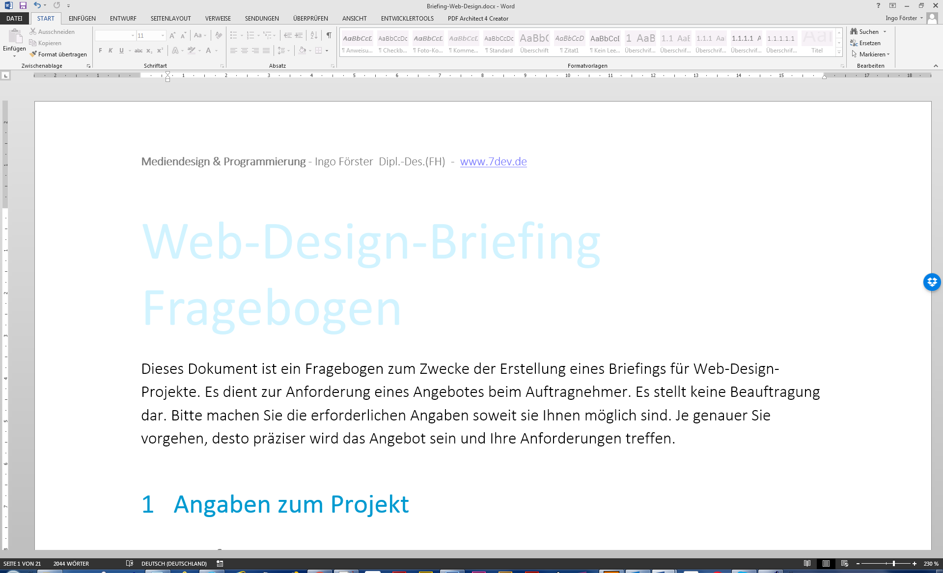 Ich habe deshalb in der vergangenen woche eine word vorlage office 2010 für die erstellung eines web design briefings.