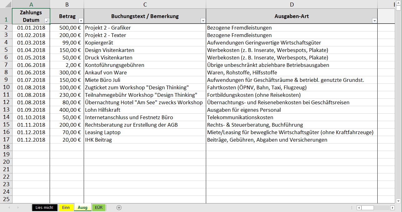 Keine buchung ohne beleg. Du willst ein kleinunternehmen gründen oder hast bereits ein unternehmen gegründet. Die excel tabelle erstellt aus ihren einnahmen und ausgaben eine einnahmenüberschussrechnung und die anlage eür. Das thema buchhaltung vorlage muster bietet vordrucke und muster welche sie ebenfalls kostenlos downloaden können.