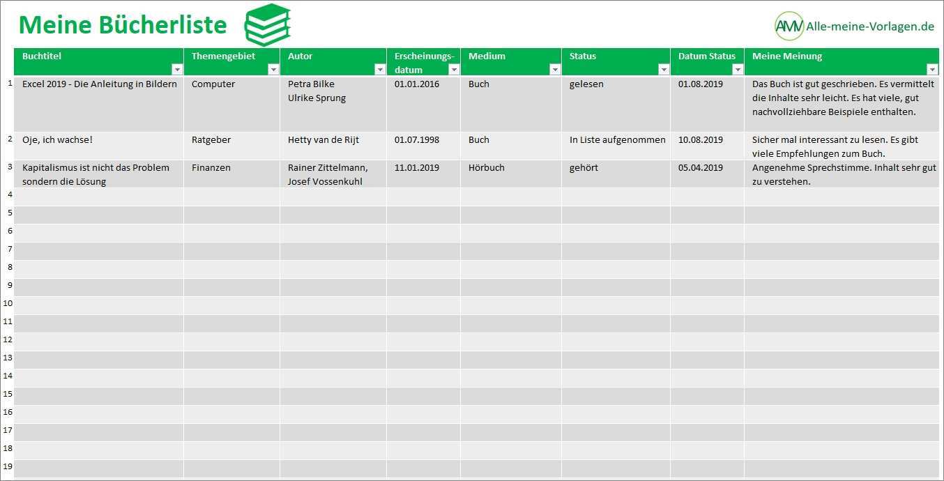 Buecherliste excel vorlage. Es lassen sich diagramme erstellen listen vorbereiten rechnungen schreiben und sogar ganze budgetplanungen anlegen. In welchem regal habe ich es abgestellt. Excel vorlagen kostenlos deutsch. Auch im modernen xpsx format.