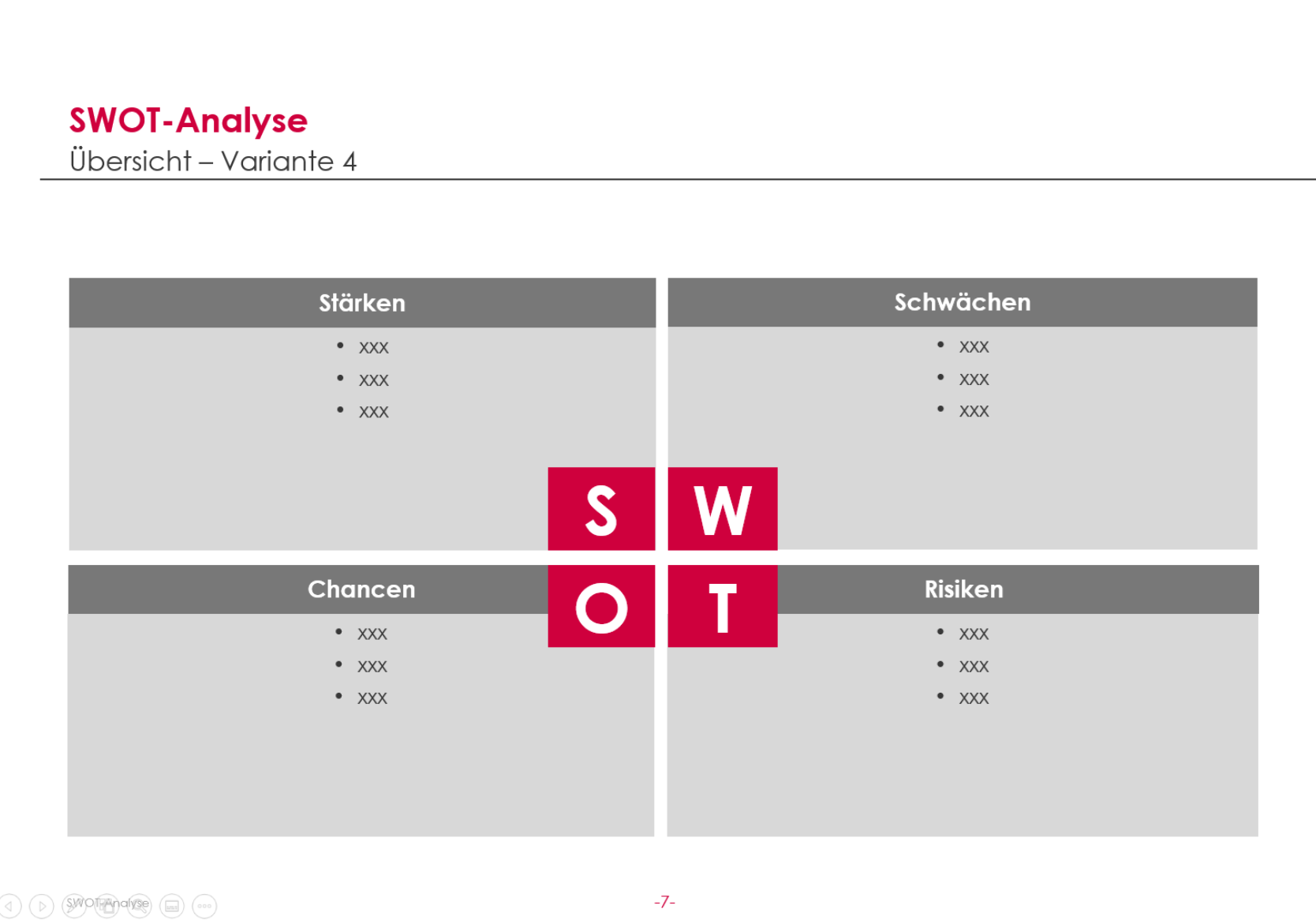 Die swot analyse in ihrer heutigen form wurde in den sechzigerjahren an der harvard business schoolentwickelt. Sinnvollerweise hat man mindestens drei risikoklassen. Die wissenschaftler erschufen dabei ein modell das geeignet ist die aktuelle lage eines unternehmens zu analysieren und durch betrachtung von stärken schwächen chancen und risiken. Auch chancen sind unvorhergesehene ereignisse die nur mit einer gewissen wahrscheinlichkeit eintreten.