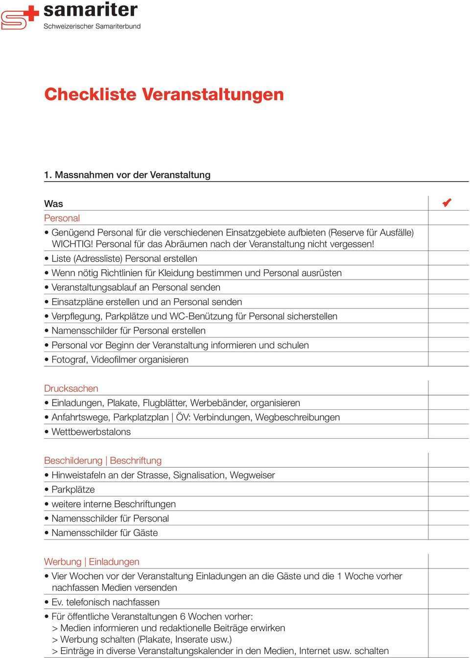 Checkliste veranstaltung muster. Sie muss in jedem fall ihren individuellen anforderungen angepasst werden. 10 schritte zur perfekten veranstaltung. Checkliste veranstaltungsorganisation seite 5 von 9 bewerbung der veranstaltung termin wer. Um die richtung nicht zu verlieren sollte man ein ziel.