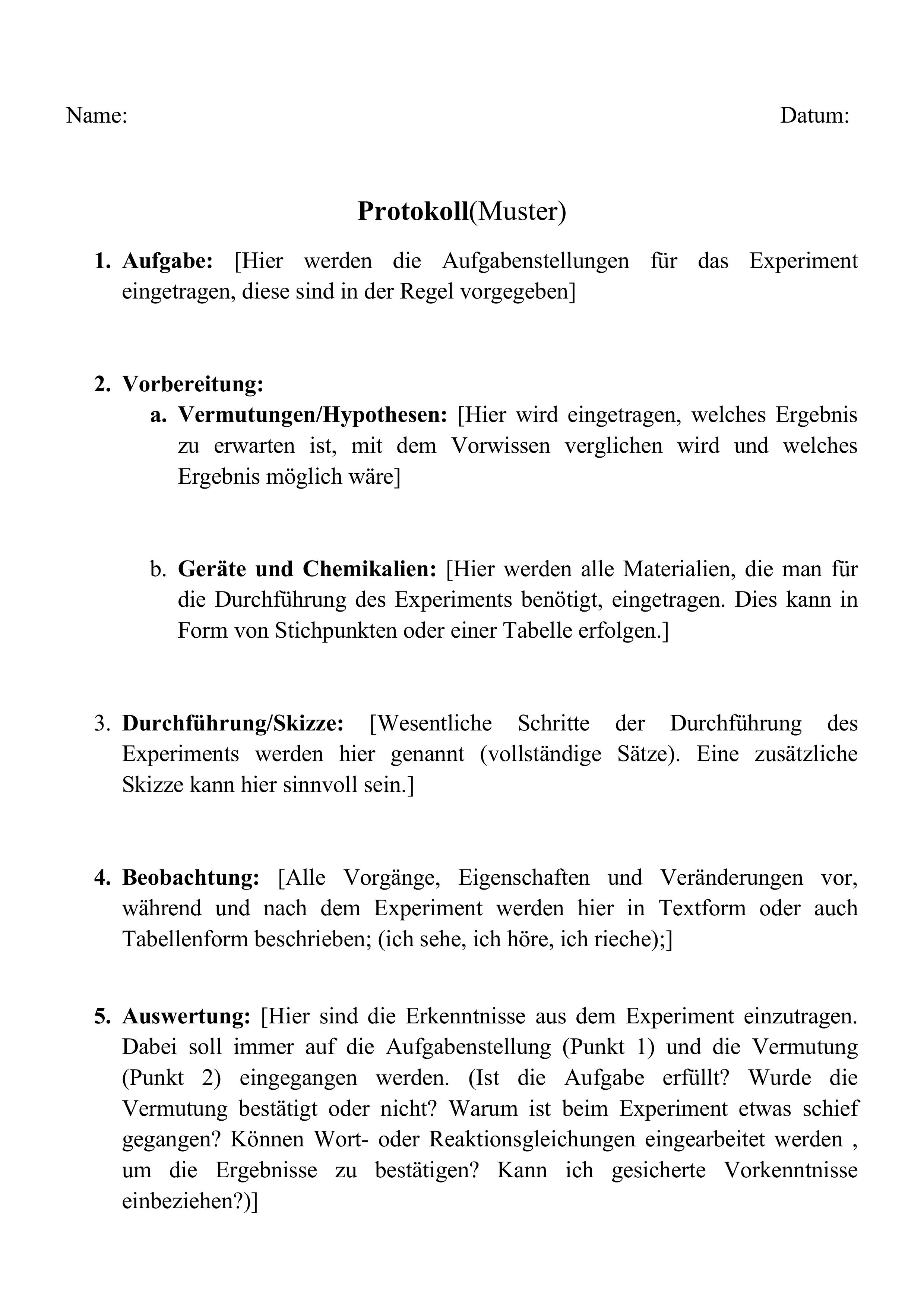 Chemie versuchsprotokoll muster. Ja nach versuch kann man aber einzelne punkte ausführlicher darstellen oder weglassen. Kostenlos vorlagen laden sie kostenlos vorlagen für ihre unterschiedlichen anforderungen herunter. Lebenslauf vorlage bewerbung einladung kündigung rechnung vertrag brief gutschein mietvertrag vorlage. Ja nach versuch kann man aber einzelne punkte ausführlicher darstellen oder weglassen.