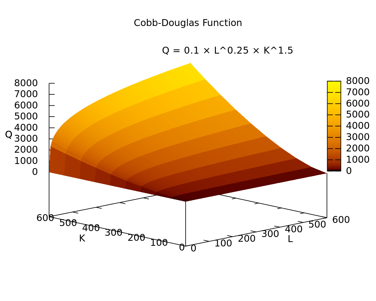 Cobb douglas produktionsfunktion beispiel. Die cobb douglas produktionsfunktion ist eine substitutionale produktionsfunktion d h die einsatzfaktoren i d r. I økonomi er en produktionsfunktion en ligning der beskriver forholdet mellem input og output eller hvad der går i at fremstille et bestemt produkt og en cobb douglas produktionsfunktion er en specifik standardligning der anvendes til at beskrive hvor meget output to eller flere input til en produktionsproces hvor kapital og arbejdskraft er de typiske beskrevne input. Cobb douglas produktionsfunktion y f k l a kl. Y k l a k α l β.