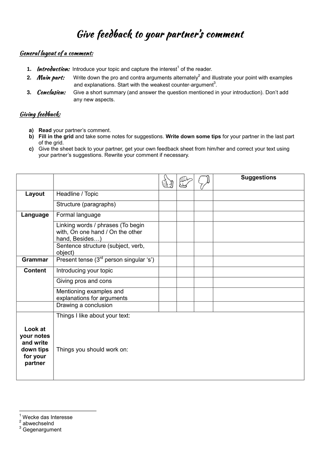 So as the author of your comment you have to first refer to this thesis and then with the help of an arguments weigh whether you agree with this thesis. In other words in mit anderen worten. Argumentieren und die eigene meinung darstellen. Im abitur kann es vorkommen dass du eine stellungnahme comment schreiben eine aussage diskutieren discuss oder eine entscheidung rechtfertigen justify bzw bewerten evaluate sollst für diese aufgaben kannst du die folgenden formulierungen verwenden.