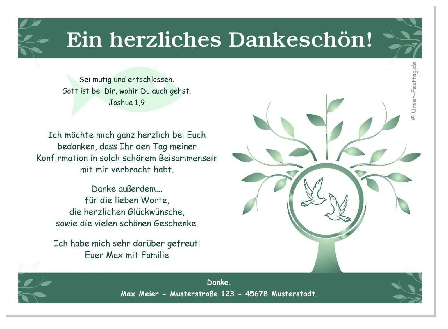 Danksagung Konfirmation Vorlage Text