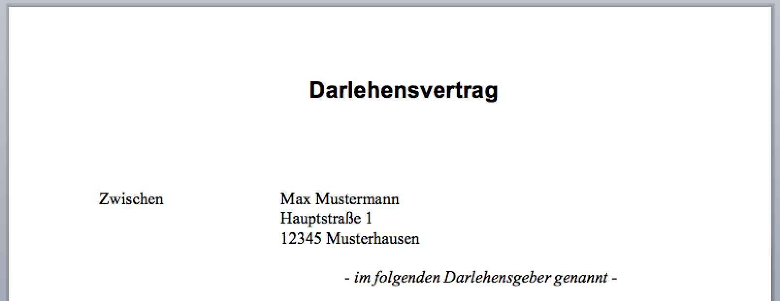 Darlehensvertrag Muster Gewerblich
