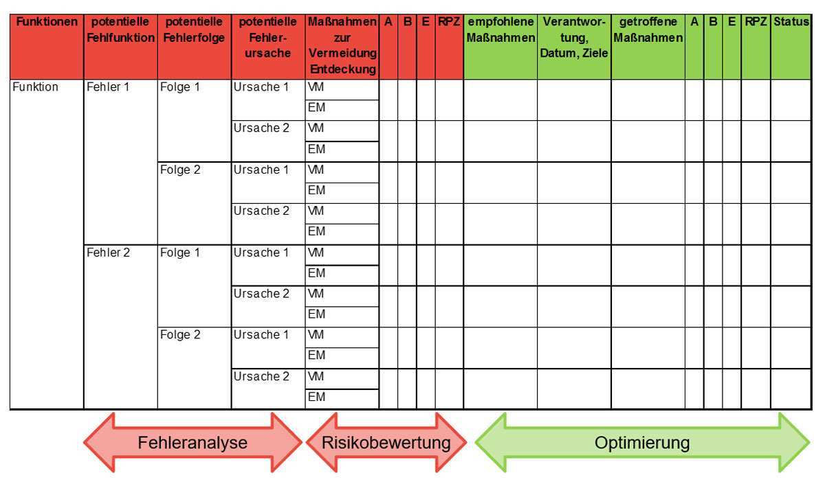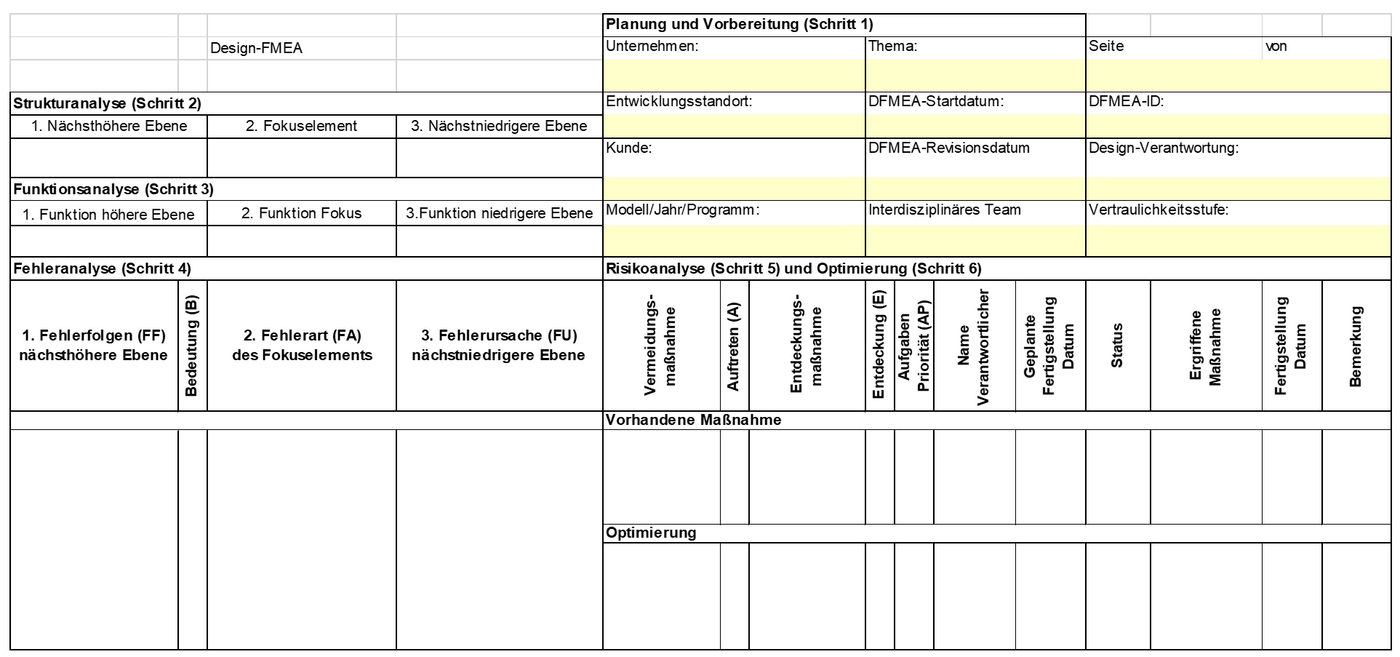 Header light green and columns light blue. Pfmea template download template. Each fmea template has 2 parts. Die unterste ebene geht bis in die einzelnen komponenten mit ihren merkmalen z b.