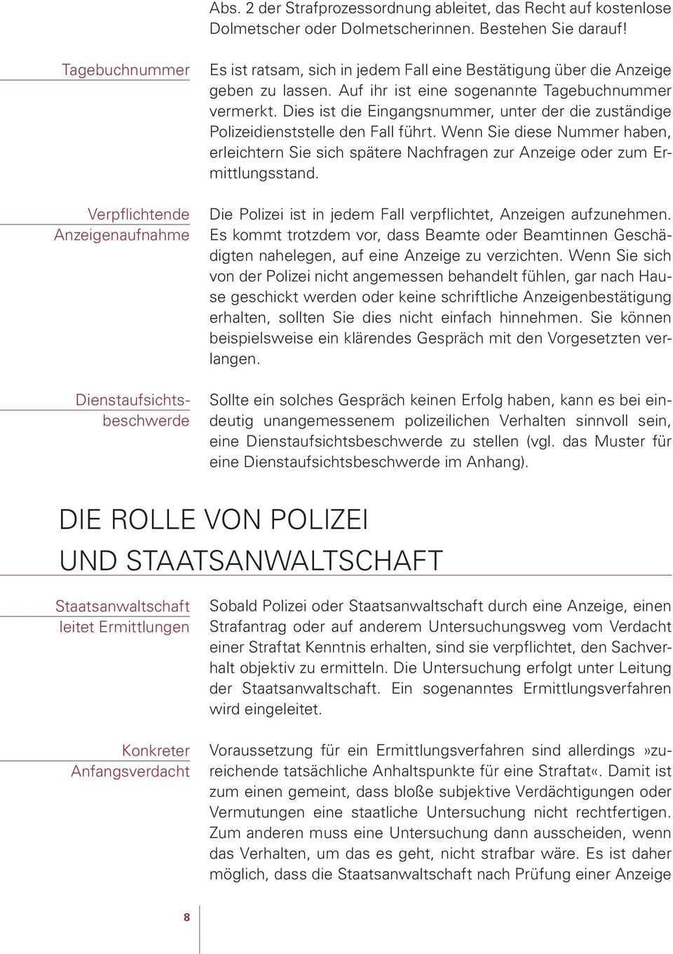 Gegenstand ihrer dienstaufsichtsbeschwerde gegen die polizei sollte ein persönliches fehlverhalten eines amtsträgers sein.